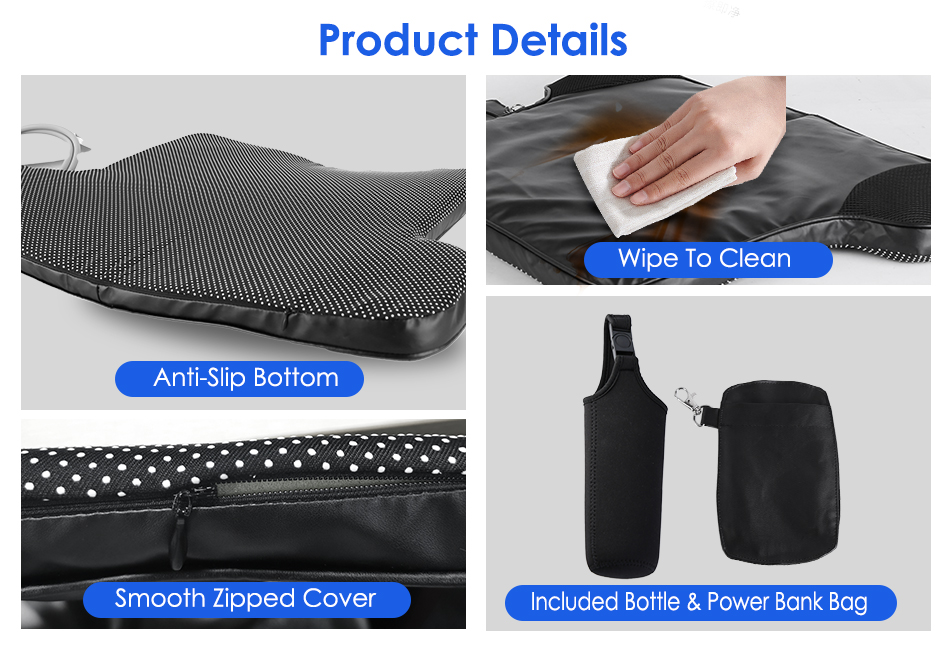 - Low Consumption & Long Lasting Usage:5V/1A low power-consumption USB plug supports up to 26hours continuous working in low speed(tested by 10000mAh power bank). 500ML/16.9OZ large capacity water bottle can be used for 15hour,no need to frequently refilling. Energy-saving water cooling seat cushion ensure all-day freshness for people who need to sitting all day long,like driver,white collar and more.