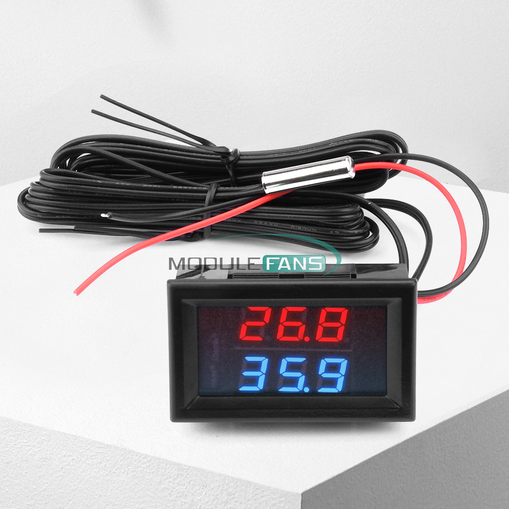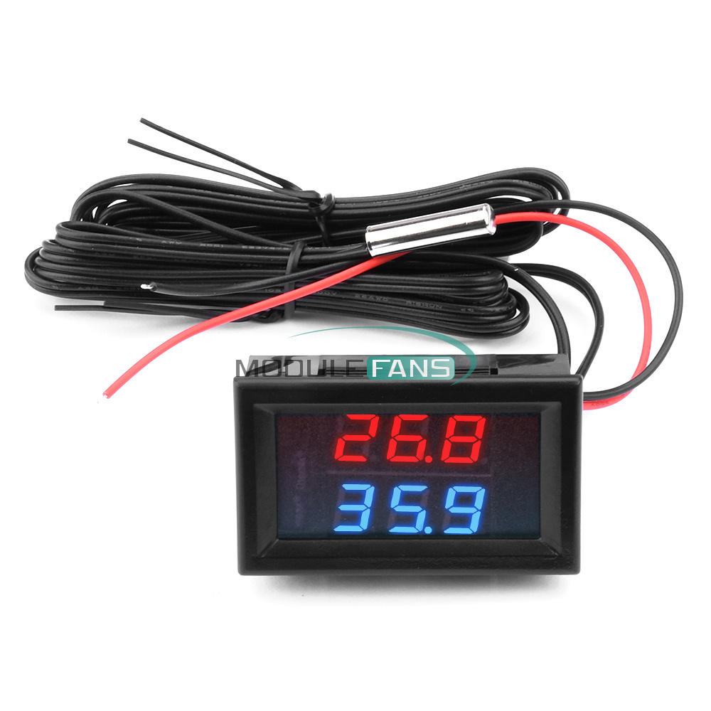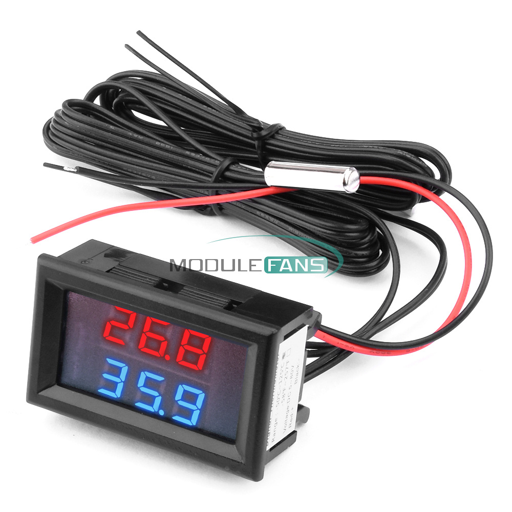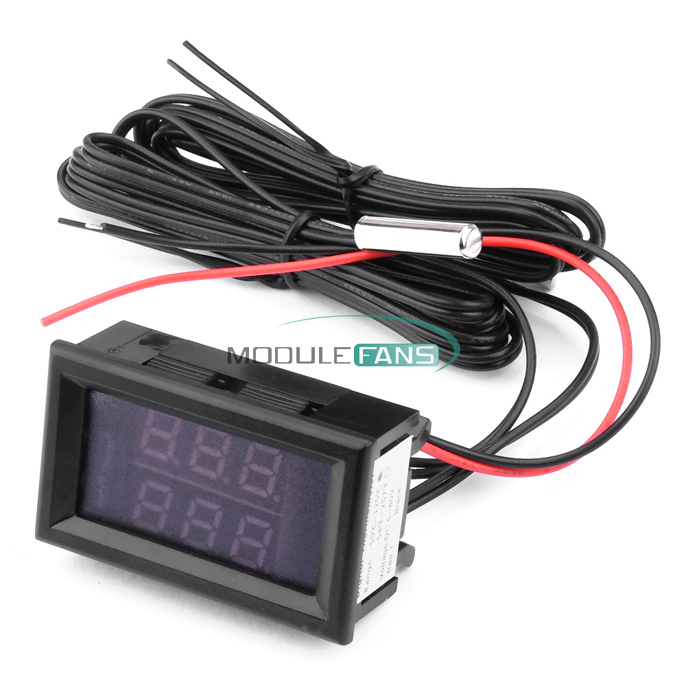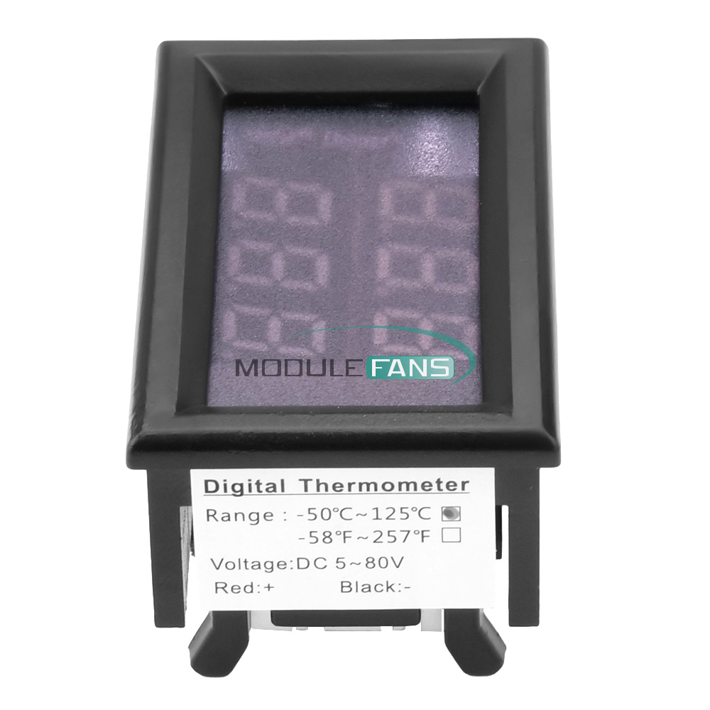 DC 5~80V Digital Thermometer Temperature Meter W/ NTC Probe ℃ / ℉ Dual Display