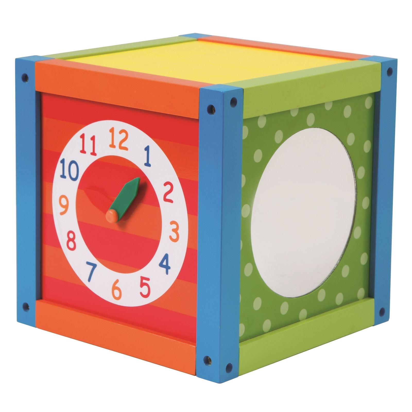 Der kleine roba Aktivwürfel vereint viele spannende Lernelemente in einem Spielzeug. Ein abnehmbarer Deckel mit Motorikschleife, eine Uhr mit beweglichen Zeigern, ein integrierter Spiegel, verschieden große Magnetformen, sowie bunte Schiebe Elemente sprechen die Sinne und die Neugier unserer Kleinen an.