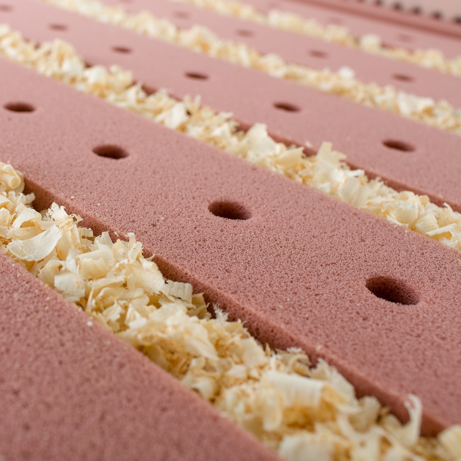 Der hochwertige emc verde®-Schaumstoff zeichnet sich durch sehr hohe Luftdurchlässigkeit sowie gel-ähnliche Druckverteilung zur Entlastung der Wirbelsäule aus. Zur Herstellung von emc verde® wird Rizinusöl verwendet. Rizinusöl ist ein natürlicher und nachwachsender Rohstoff und somit können die Erdölvorräte geschont werden.