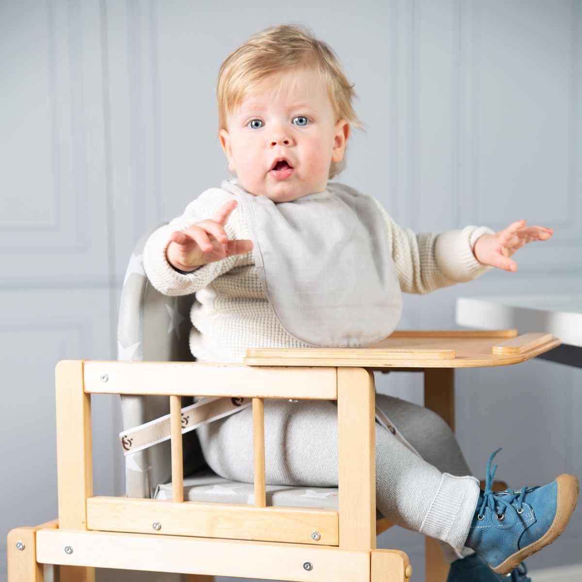 Der roba Kombi-Hochstuhl ist ein sicherer und flexibler Hochstuhl der sich mit wenigen Handgriffen in eine Tisch-Stuhl-Kombination verwandeln lässt.
