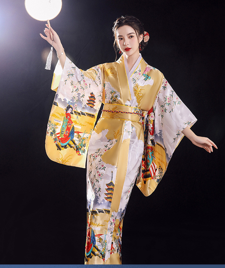 Traditional Japanese Style Kimono Women Bohemian Pajamas Robe Bathrobe Homewear Ethnic Stage Costume Photoshoot Cosplay Dress