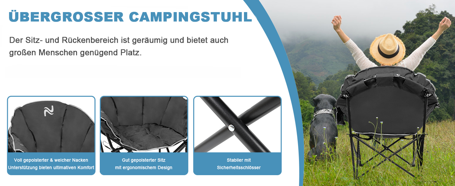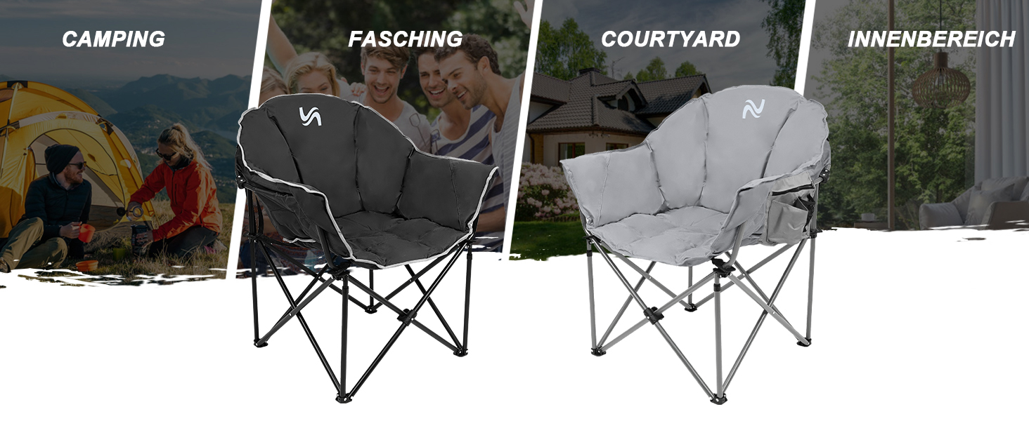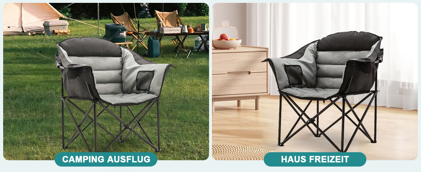 【Bequeme Sitzgefühl】6cm dicke füllung, das dicke weiche polsterung sorgt für einen angenehmen sitz; Große sitzfläche, 58x60cm sitzplatz raum, wird sich nicht überfüllt anfühlen, du solltest werde bevorzugen zu haben einen größeren ruhebereich; die 55cm hohe rückenlehne ist schon hoch so das man gut gestützt sitzt, können sie auch eine kleine kopfstütze vorbereiten für zusätzlichen komfort beim ausruhen; das faltstuhl läd ein um es sich so richtig gemütlich zu machen!