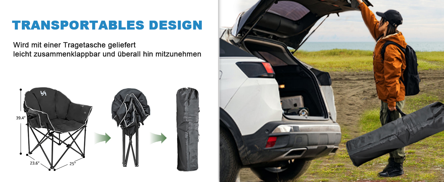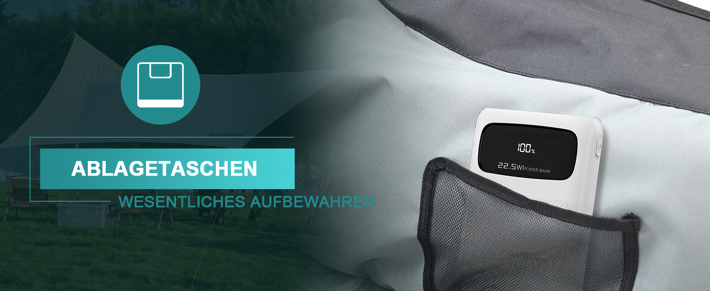 【Praktische Seitentaschen und Tragetasche】Auf der rechten seite des stühle befinden sich becherbeutel und kleine aufbewahrungstaschen, welche sind handlich für dich zum platzieren wasserbecher, getränk, mobiltelefon oder anderen klein kleinigkeiten; Die lieferung erfolgt in einer praktischen transporttasche, das erleichtert den transport, auf und abbau ist binnen sekunden erledigt, muss nur auseinander gezogen bzw. wieder zusammengeschoben werden, für schöne grillabende am Strand oder am Rhein.