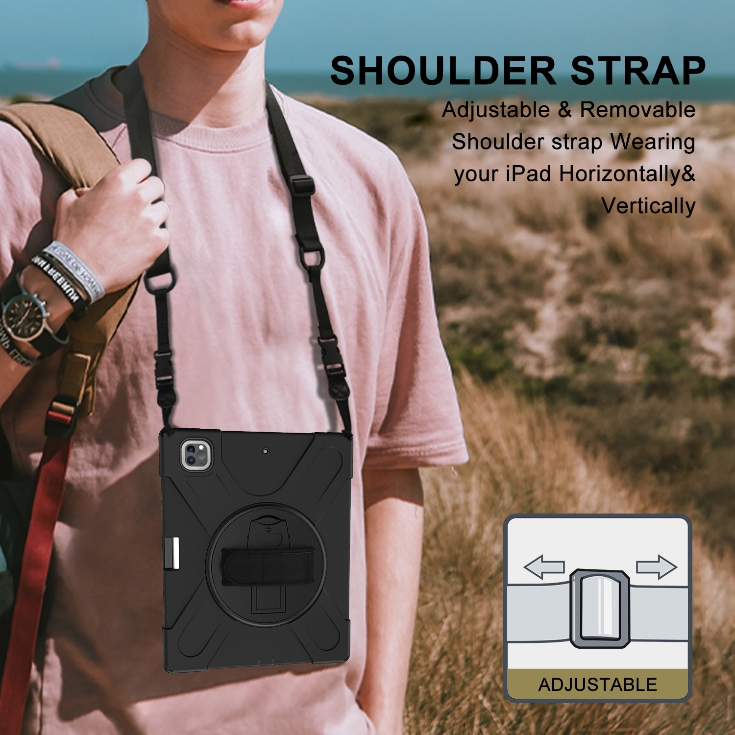 Rotierbare Halterung Silikon Hybrid PC Tablet-Hülle mit Schultergurt für Apple iPad Pro 13 2024 - Sicher und flexibel