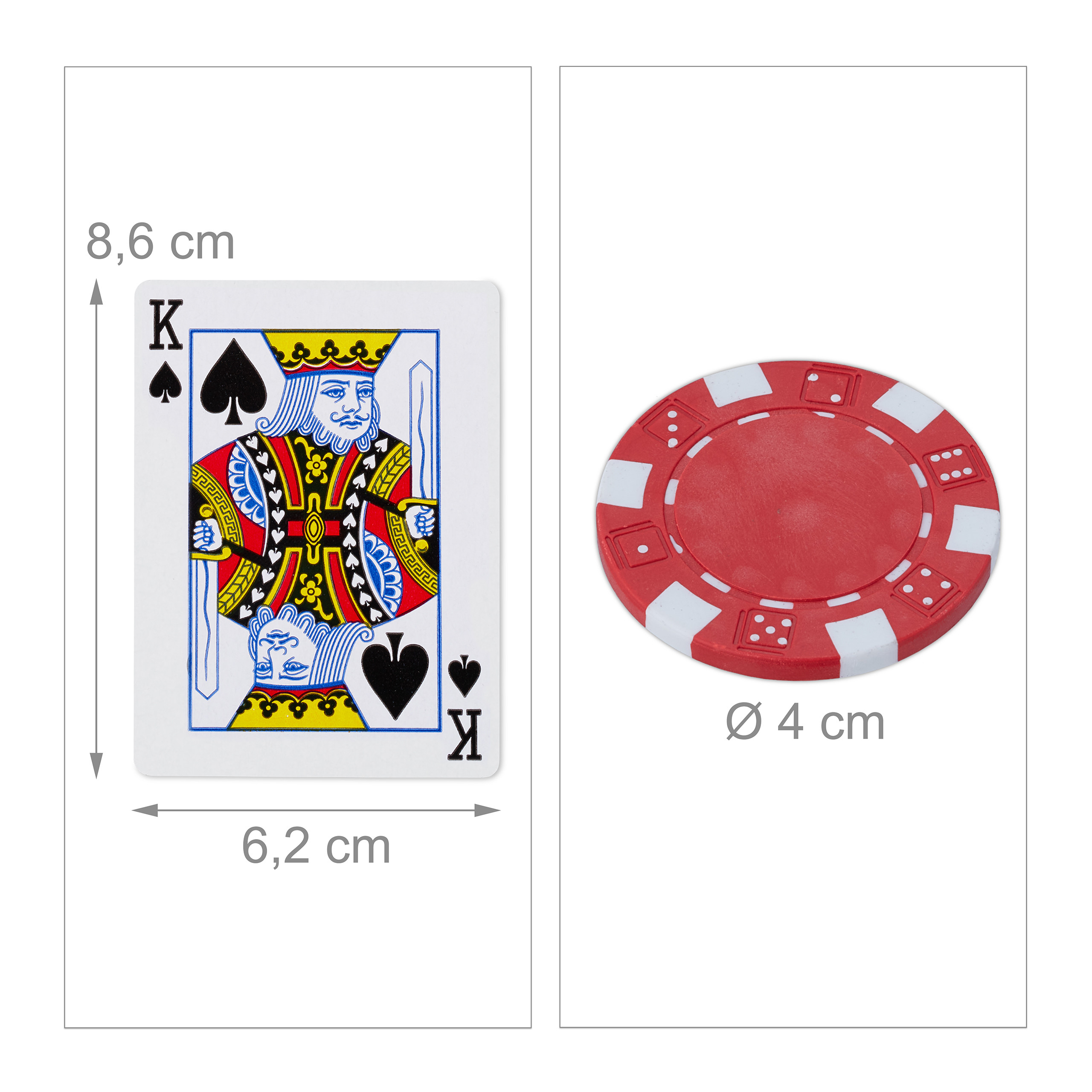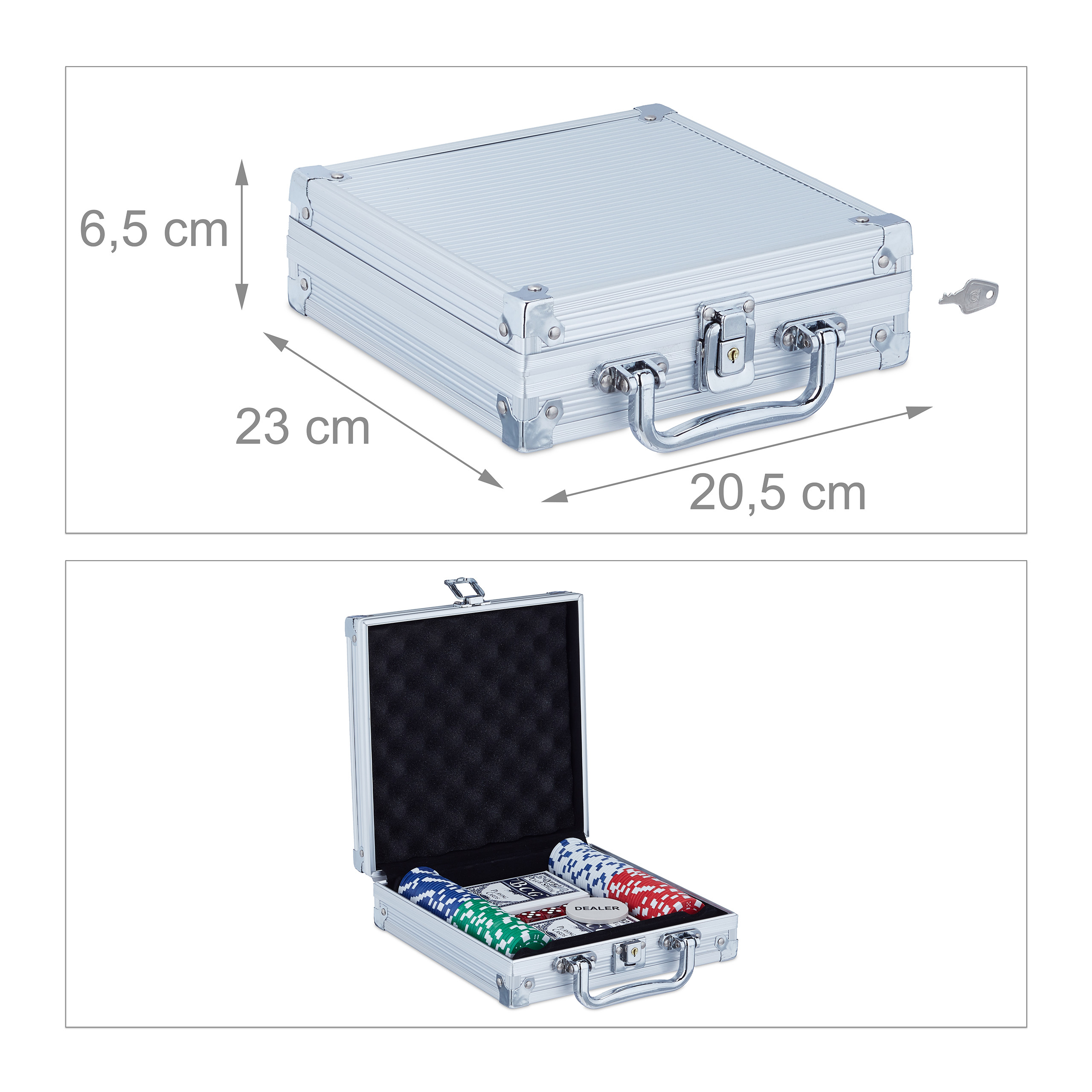 Indossa la tua poker face e metti alla prova la tua fortuna! Con questa valigetta da poker completa niente potrà impedirti di organizzare una serata casinò a casa. Sentiti proprio come a un tavolo di Las Vegas con le chips senza indicazione del valore e con i mazzi di carte internazionali, che possono poi essere riposte al sicuro nella valigetta in alluminio richiudibile e comoda da trasportare. Il set è perfetto per giocare a tutte le varianti di poker: Texas Hold'em, Seven Card Stud, Five Card Stud e Omaha Hold'em ecc.