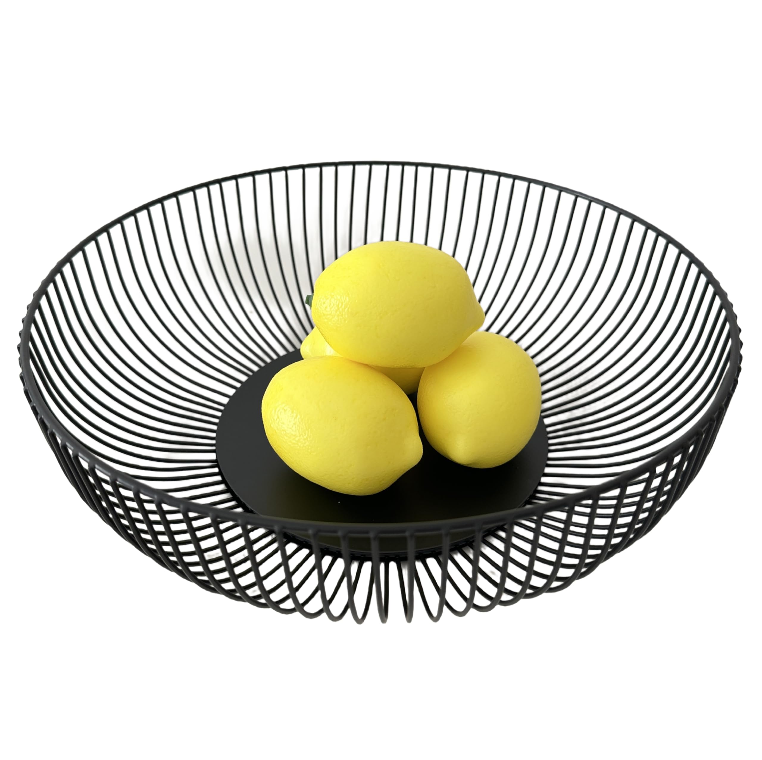 HEMISPHERE FRUIT STORAGE BASKET is made of premium heavy duty iron, wire circle design, it increases the sleek modern kitchen sense, with no loss in organization and storage functionality. 11 inch in diameter, the volume of fruit baskets for kitchen counter is large enough to meet your daily needs. - As a wire basket to organizer assorted natural fruits. - As a vegetable basket to storage potato, onion. - As a storage basket to serve bread, egg, k cup, snack and other household supplies. - As a table centerpiece stand is filled with decorative balls, dried potpourri and more. Suits for home, kitchen, living room, bathroom, toilet corner, office, camper, outdoor. Best gift for housewarming, wedding, party, birthday, holiday and more. Compare with glass fruit stand, plastic fruit bowl, ceramic fruit stand, wooden fruit holder, metal wire basket is more sturdy and reusable. Package Includes Hemisphere fruit basket x 1, black, 11 x 11 x 6 in / 28 x 28 x 15.5 cm PLEASE NOTE that try to keep the iron fruit rack dry, toweled it after washing, to protect it from rust and flaking paint.