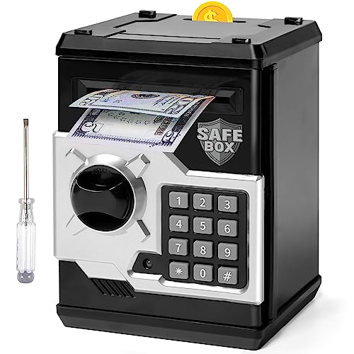 💰【Keep Safe Money】Open the door of the kids safe with 4-digit code(default password 0000). ATM piggy bank for boys, easy to program a personalized code, perfect for what your boys/girls needed to keep their money - safe! Kids will love hiddening their "valuables" in this coin bank.