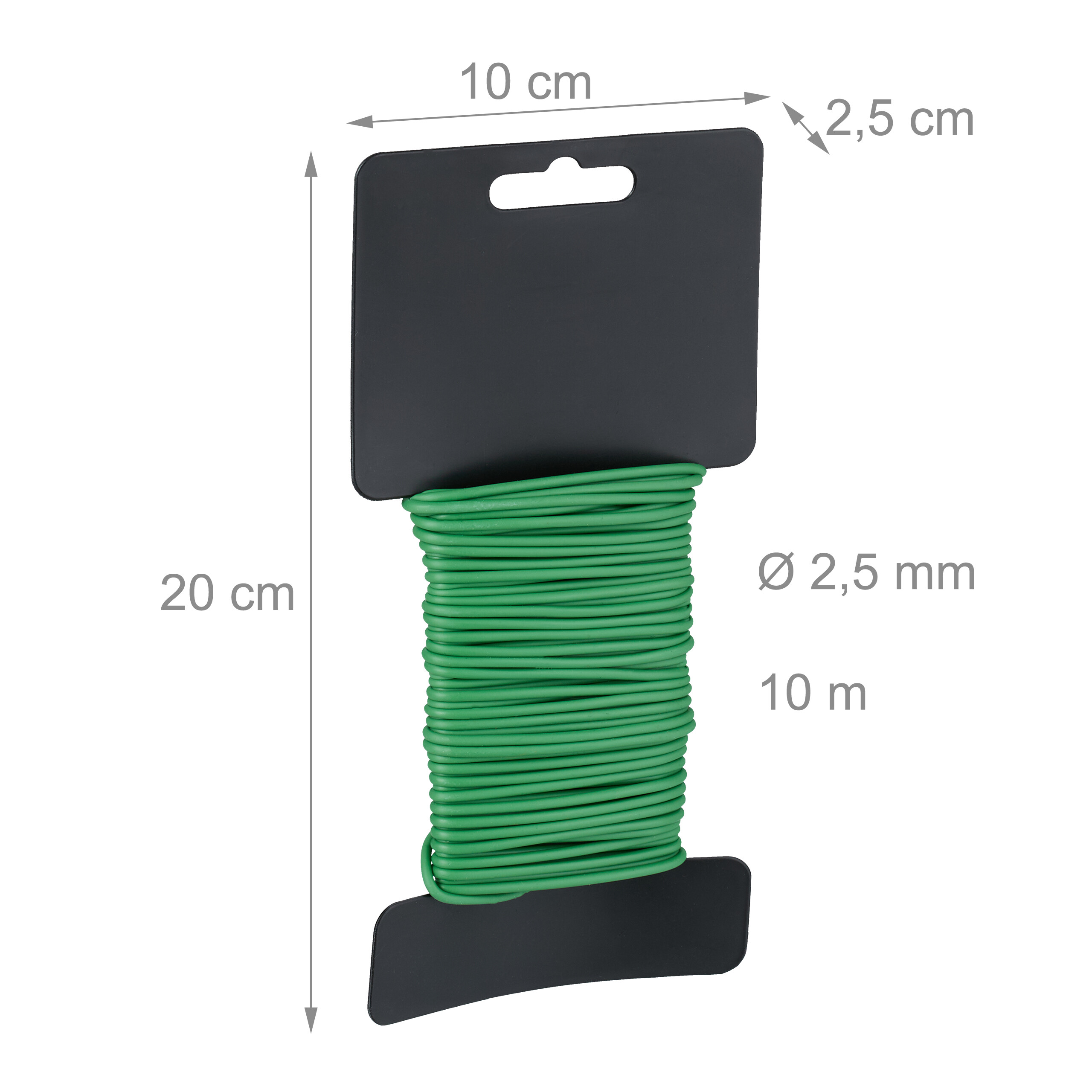 - Détails : support HxLxP : env. 20x10x2,5 cm - Diamètre fil : 2,5 mm / Longueur de chaque : env. 10 m