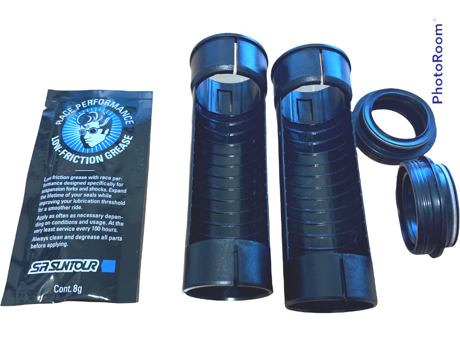 Komplettset zur Überholung von SR Suntour Federgabeln (28 mm), inklusive Buchsen, Dichtungen und Fett – für optimale Leistung.