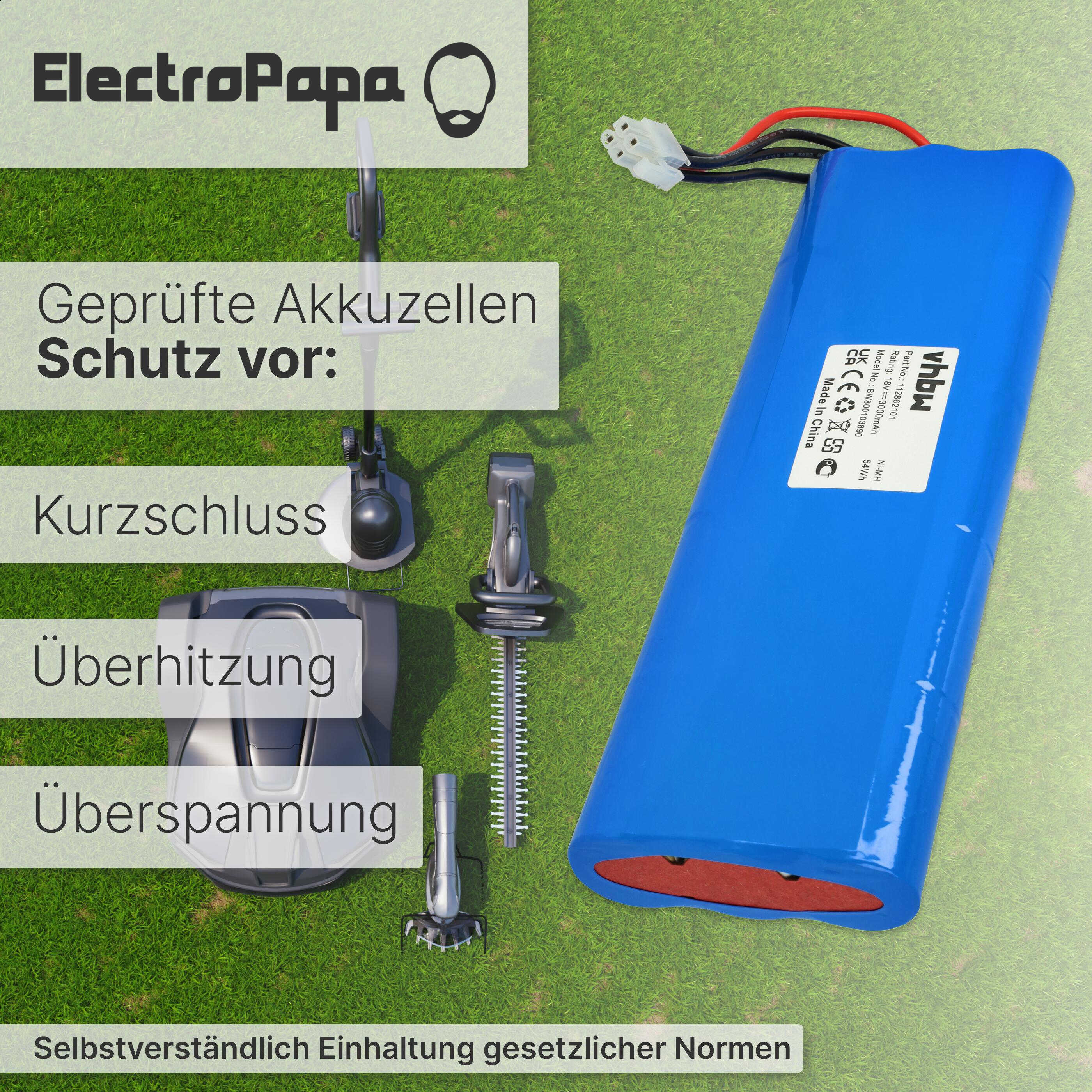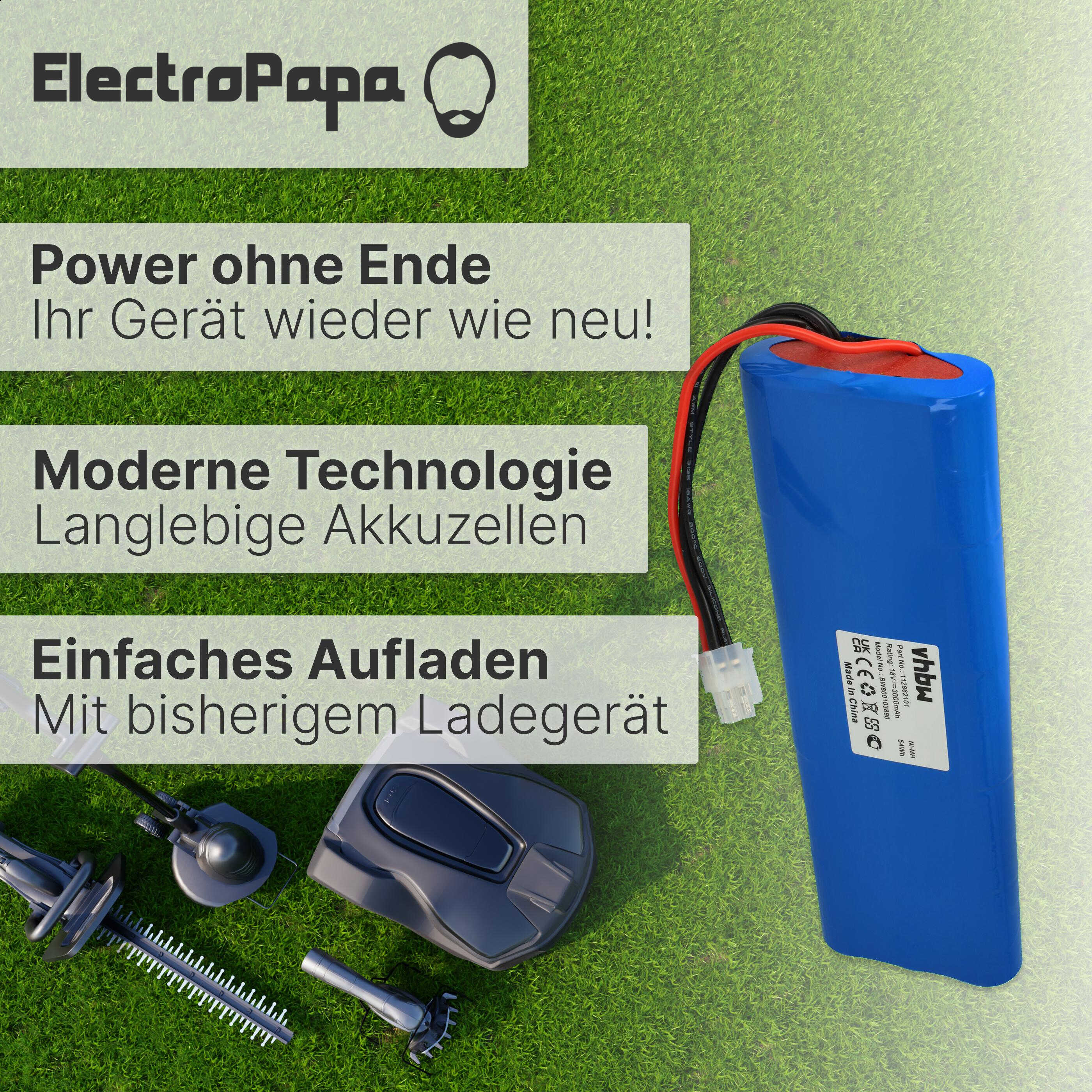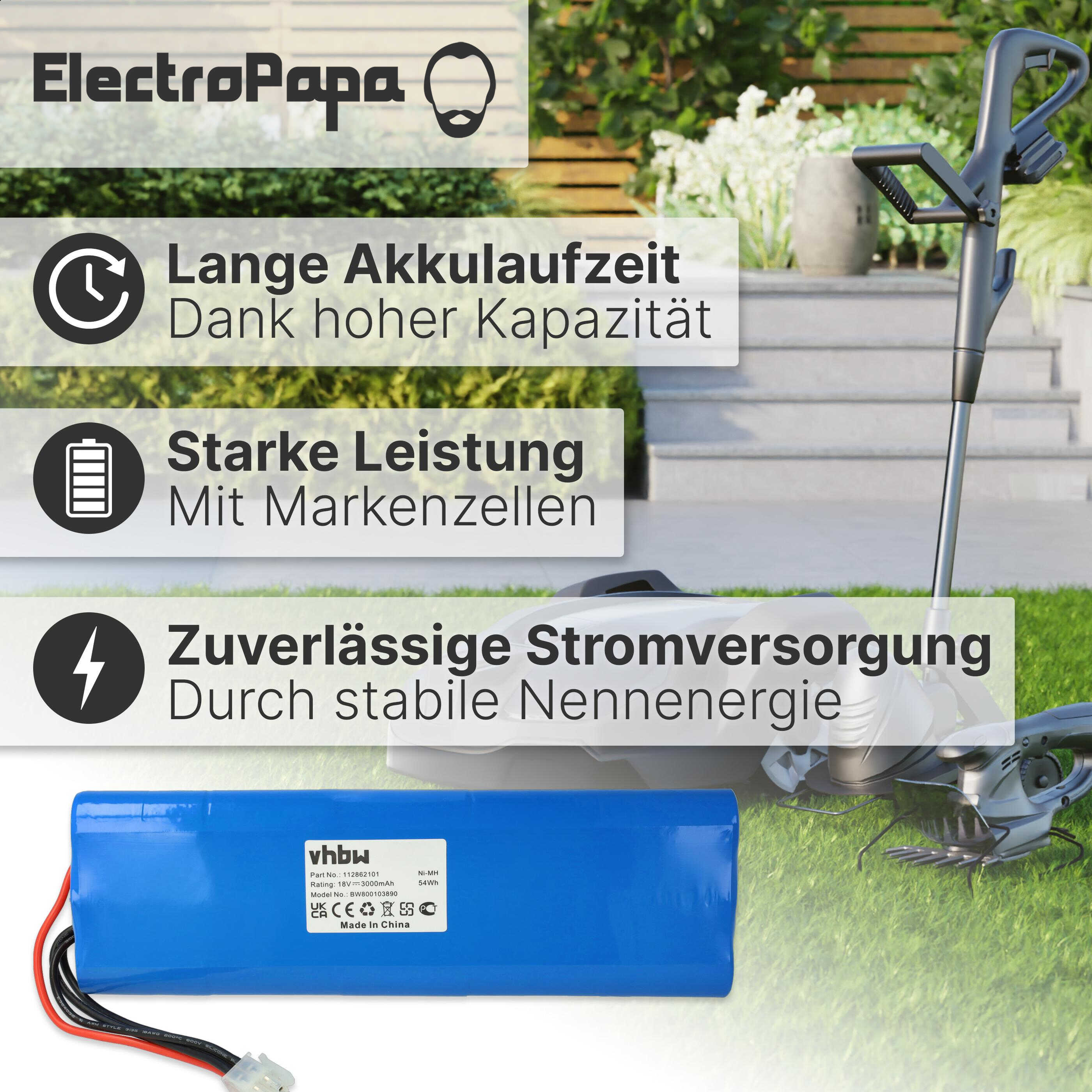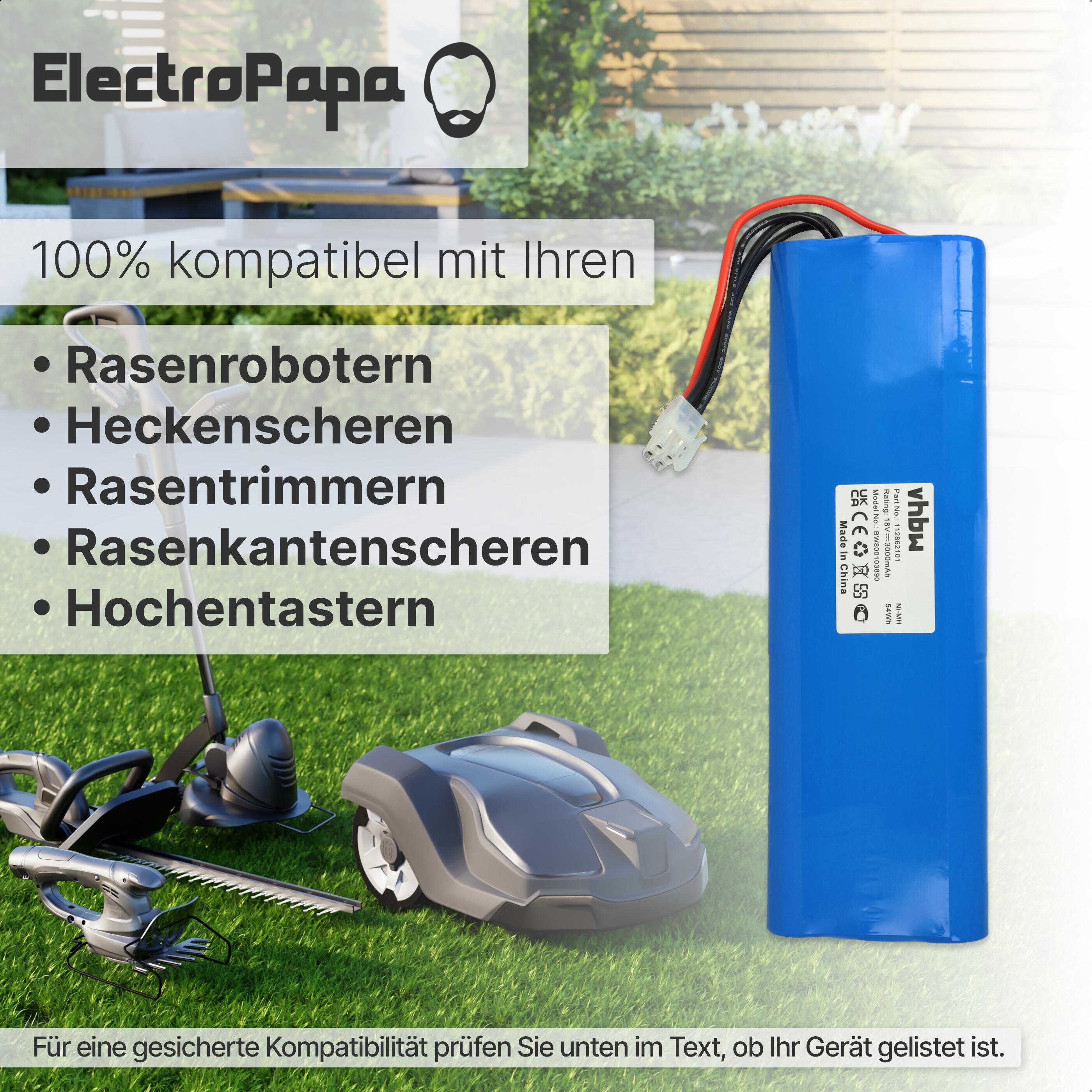 vhbw leistungsfähiger Ersatz-Akku für Husqvarna Automower 220AC, 230ACX, 210C, 260ACX, 210AC Rasenmäher Rasenroboter (NiMH, 3000mAh, 18V)
