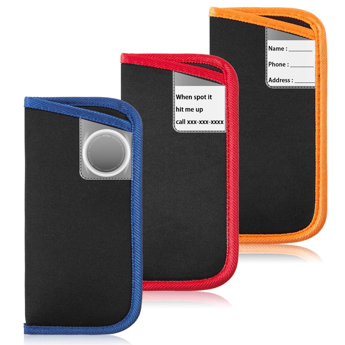 3 Pack Reading Glasses Pouch - Soft Eyeglasses Bag Portable Cloth Eyewear Case (Blue Orange Red Edge, Large)