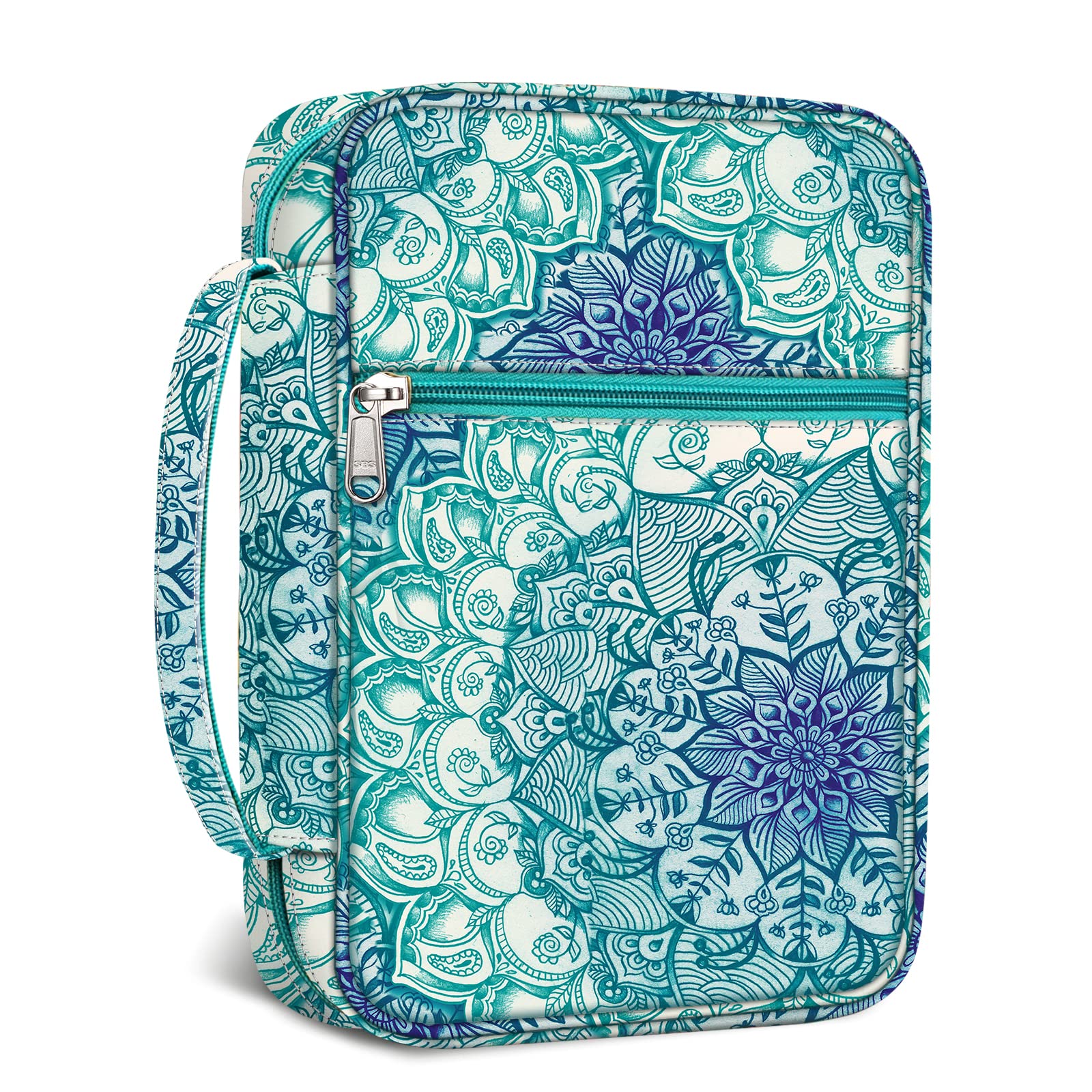 Bible Cover, Carrying Book Case Church Bag Bible Protective with Handle and Zippered Pocket, Gift for Mother Lady Women Men, Emerald Illusions