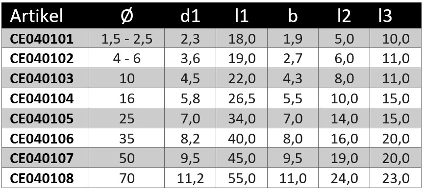 Stiftkabelschuhe unisoliert - blankTemperaturbereiche bis zu -50°C und bis zu 150°C Normen und ETIM-Klasse 7