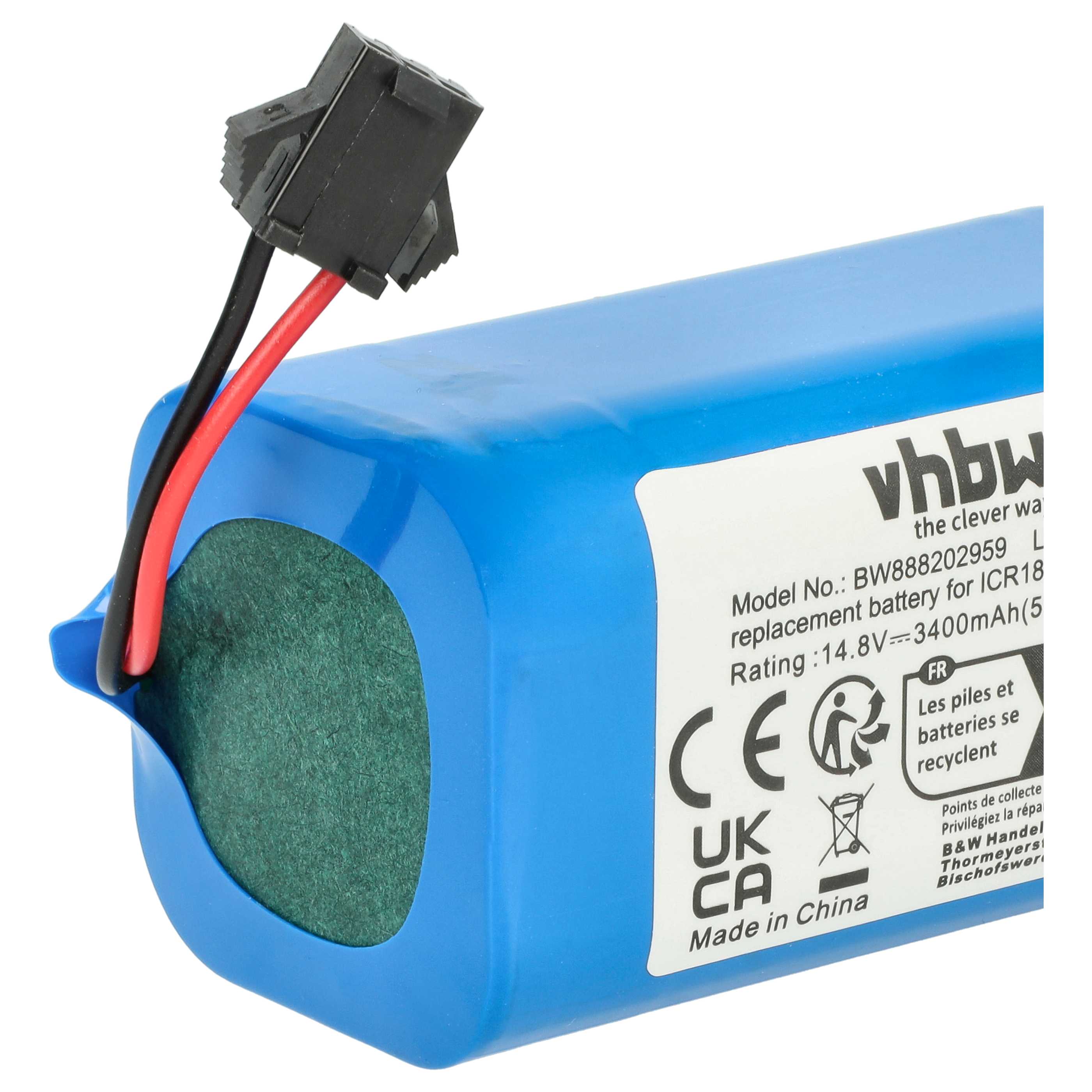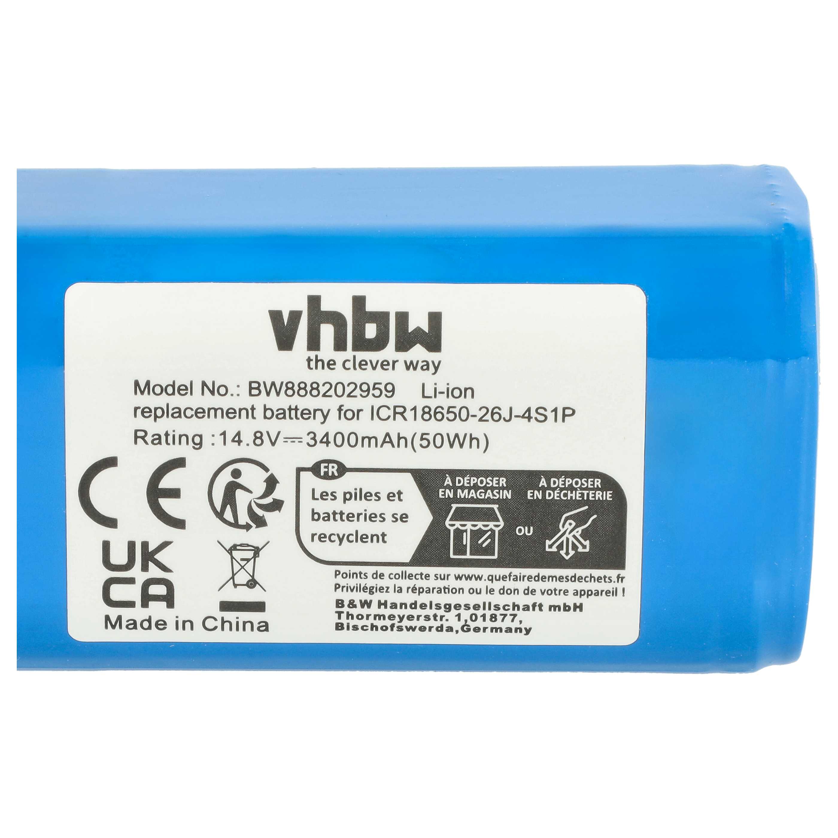 vhbw leistungsfähiger Ersatz-Akku für Eufy RoboVac G30 Edge, G10 Hybrid, G30, G20, G15, G20 Hybrid Saugroboter (Li-Ion, 3400mAh, 14,8V)