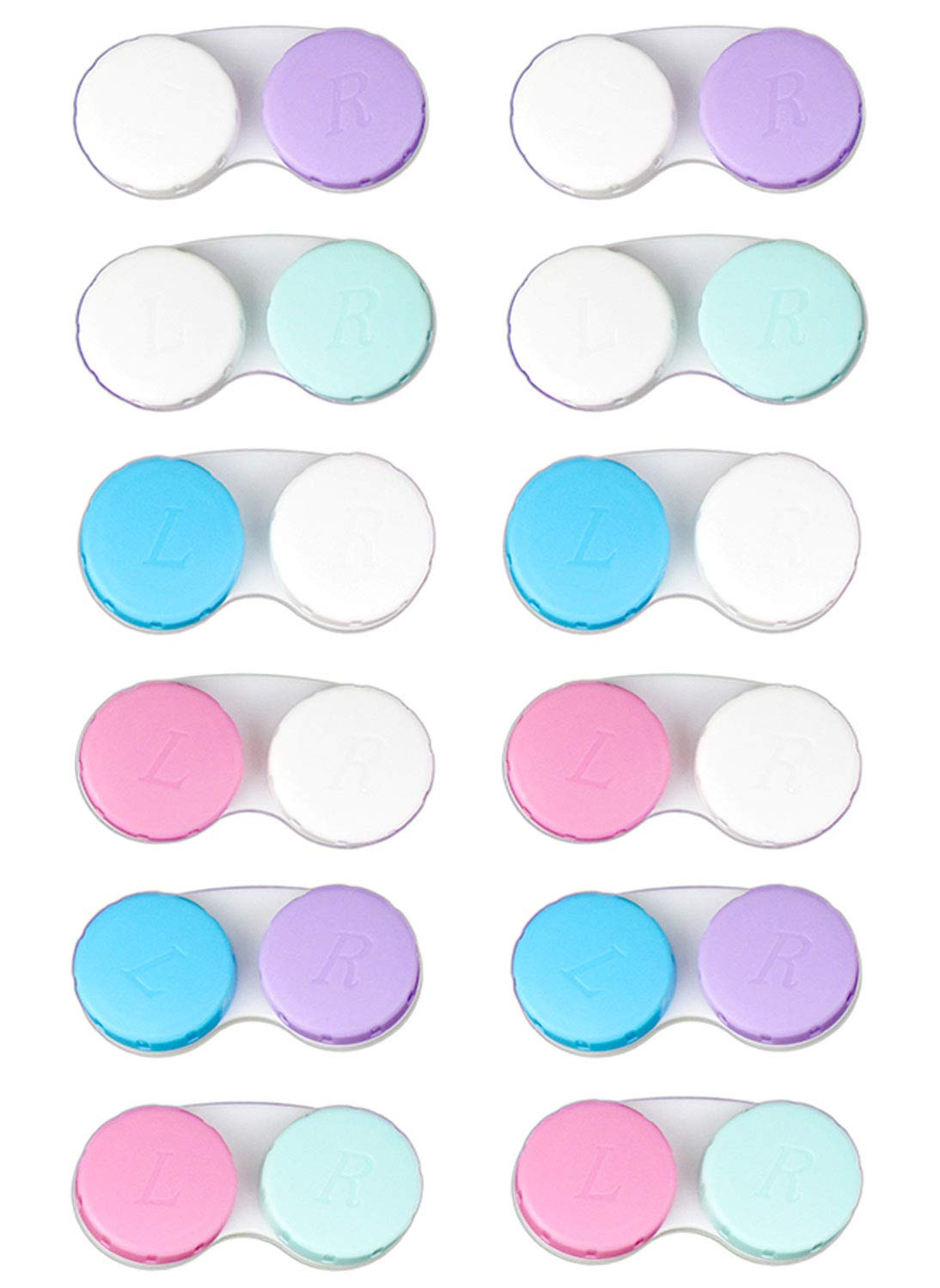 12 Pack Colorful Lens Case Bulk Box Holder Container Soak Storage Kit, 6 Color LId