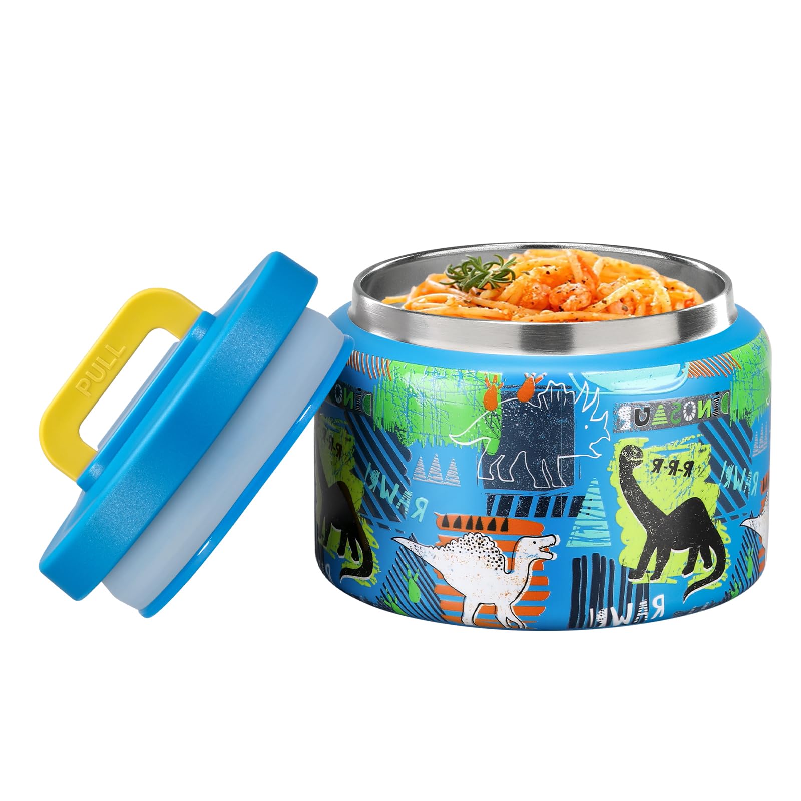 8oz Soup Thermo Wide Mouth Vacuum Insulated Thermo Food Jar, Leak Proof Stainless Steel Food Thermo for Hot&Cold Food Kids Food Lunch Soup Container for School Travel (F-Blue-Dinosaur)