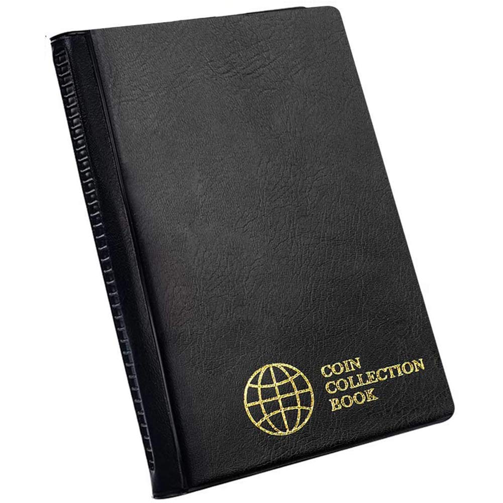 Coin Collection Album 60 Pockets - 4.5x4.5cm/1.8x1.8 inch Coin Holder Book Coin Storage Album Money Penny Pocket for Collectors Black CS0106BK