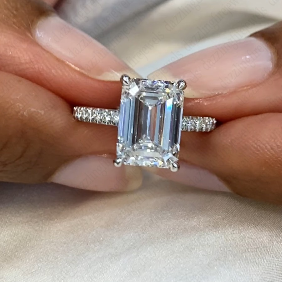 3.85 TCW Emerald Cut Moissanite Hidden Halo Engagement Ring Solid 950 Platinum