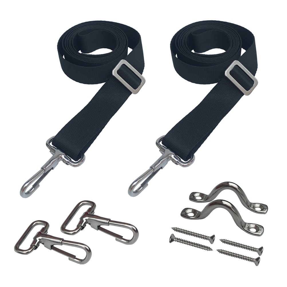 PACKAGE includes 2 pcs marine nylon top straps and 2 pcs stainless steel eye straps and 2 pcs stainless steel hook clips and 4 pcs screw to use for people who want double hook clip on both ends and not need to other place to buy the hardware