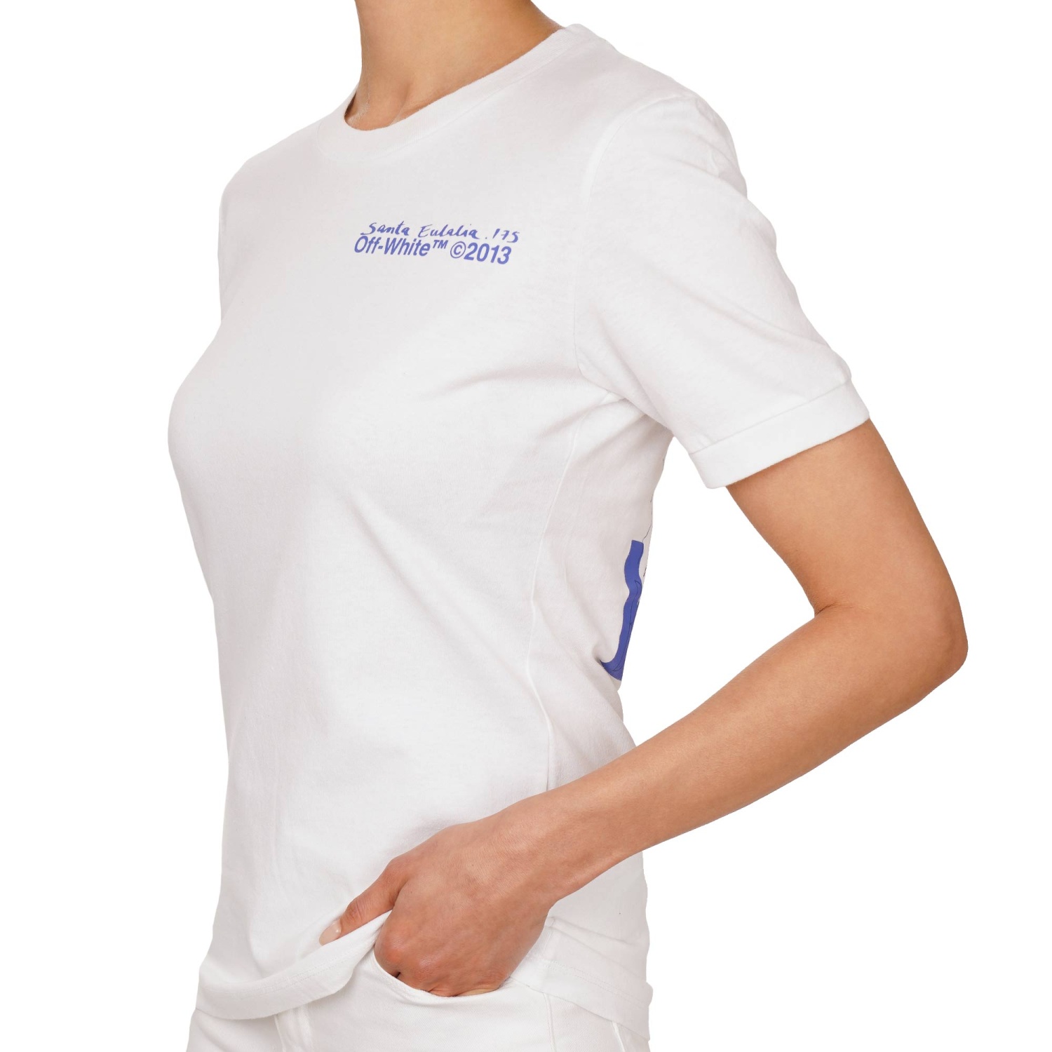 - T-shirt in cotone con stampa logo Santa Eulalia, Barcellona e Off White in bianco e blu by OFF-WHITE c/o Virgil Abloh