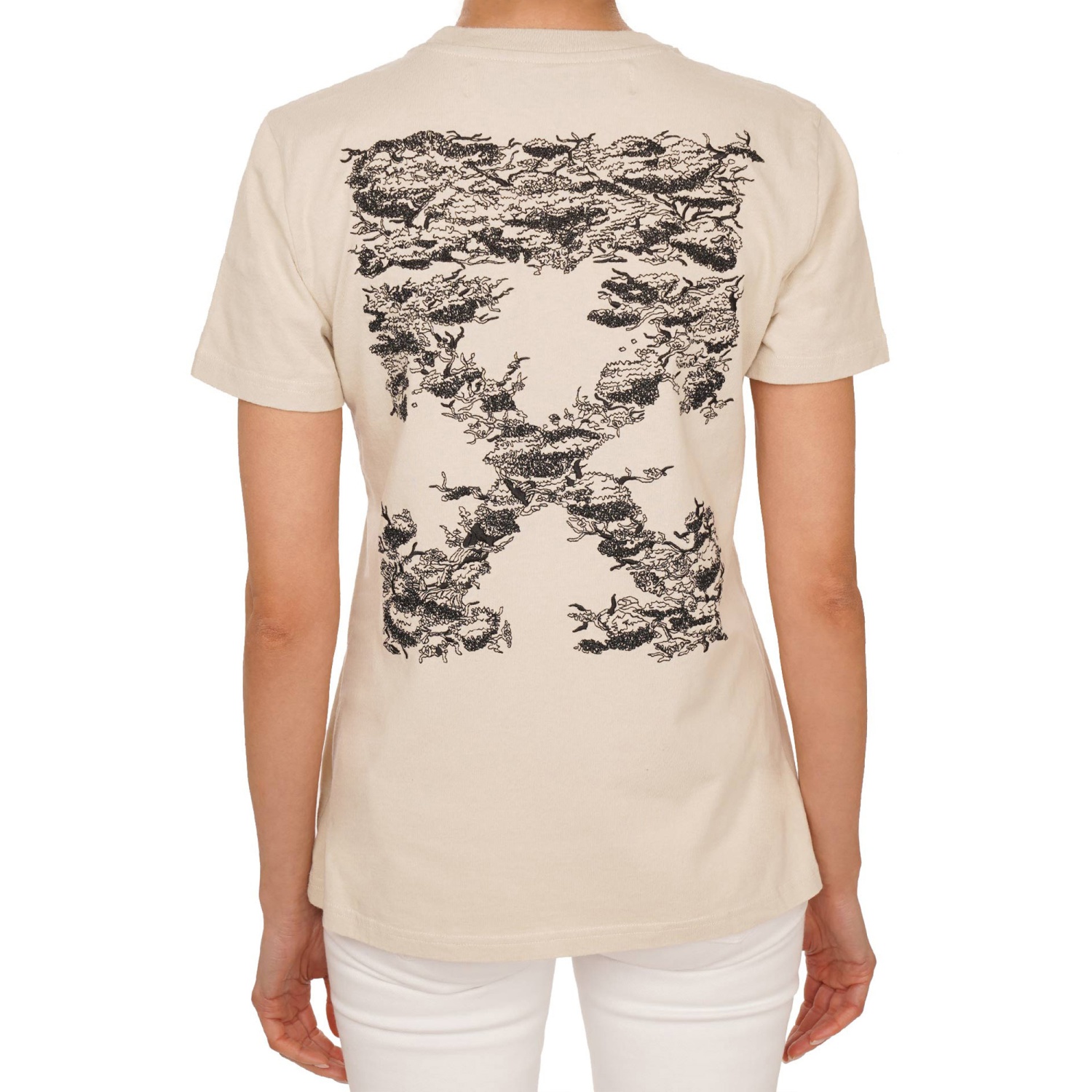 - T-shirt in cotone con ricamo albero e logo Off White in beige by OFF-WHITE c/o Virgil Abloh