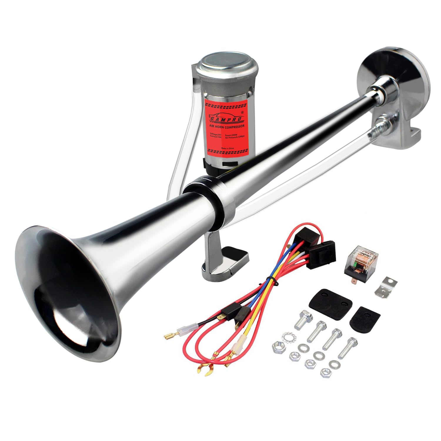 12V 150DB Car Air Horns, 18 Inches Chrome Zinc Single Trumpet Truck Air Horn with Compressor for Any 12V Vehicles Trucks Lorrys Trains Boats Cars (24V silver)
