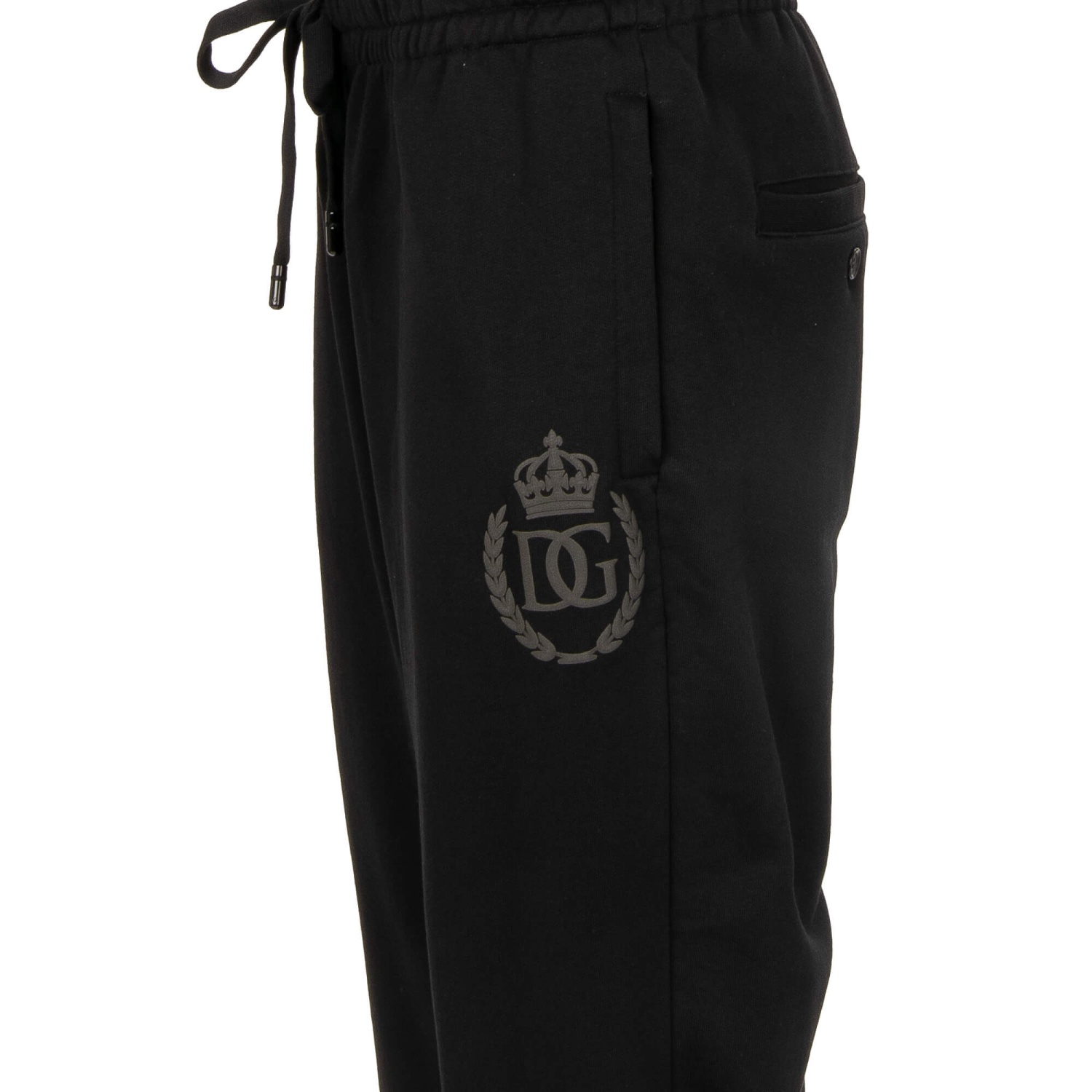 - Cotton Track Pants / Joggings Pants with DG crown logo print, elastic waist and zipped pockets in black by DOLCE & GABBANA