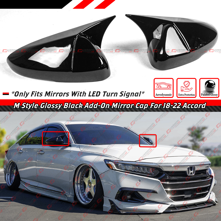- M Style Add-On Mirror Covers With Horn Shape Design For 10th Gen Accord Models With LED Turn Signal. These Cover Will Give Your Accord Exterior The Luxury And Sporty Tone.