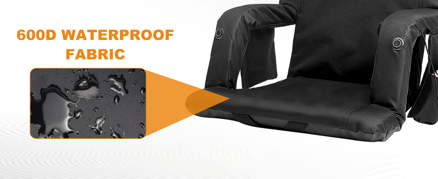 Soft and Comfortable: The stadium chairs for bleachers with back support is made of waterproof polyester and durable oxford cloth. A layer of PVC leather with raised particles is also added to the bottom of the seat, which is non-slip and easy to clean. The bleacher seat has a built-in soft high-density memory foam cushion to create a comfortable seat for you. And stadium seat is equipped with 6 reclining positions, which can be set to the most comfortable position.