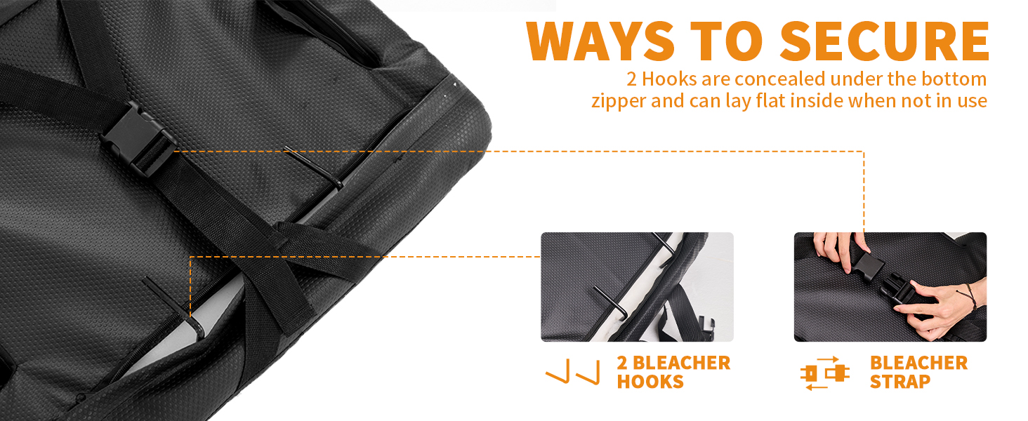 Large Storage Space: The bleacher seats with backs and cushion wide has 3 hidden pockets. Armrests on both sides of the seat have hidden zippered pockets. There is also a huge pocket on the back of the seat. Conveniently store your personal items such as snacks, eyes, tissues and more. Special mesh pocket cup holder design prevents drinks from spilling. These pockets are hidden under the zipper, which does not take up space or affect the appearance.