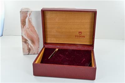 Here we have for sale a used Tudor red vintage watch box that is complete and opens properly, with good hinges. The box has some marks an wear inside and out and is marked 94.00.1 to the base. The inner box measures approximately 124 x 97 x 47mm and includes the red velevet covered board that holds the watch. The inner box comes in a more modern outer Tudor box that has some marks.