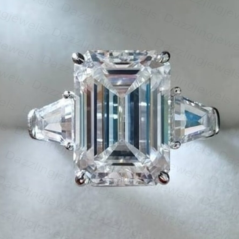 - Stone: Emerald Cut 11x9 mm Moissanite