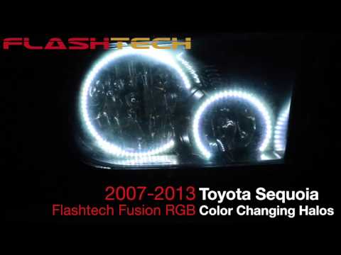 Toyota Sequoia V.3 Fusion Color Change LED Halo Headlight Kit 2007-2013, originally designed and uniquely manufactured by Flashtech, are the most advanced halo kit ever designed. Flashtech's Fusion color changing technology eliminates the frustration of choosing just one halo color and enables complete halo customization with the press of a button.