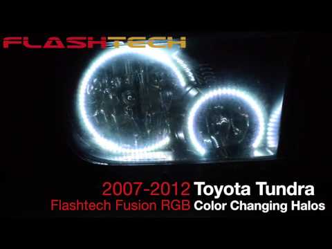 Toyota Tundra V.3 Fusion Color Change LED Halo Headlight Kit 2007-2013, originally designed and uniquely manufactured by Flashtech, are the most advanced halo kit ever designed. Flashtech's Fusion color changing technology eliminates the frustration of choosing just one halo color and enables complete halo customization with the press of a button.