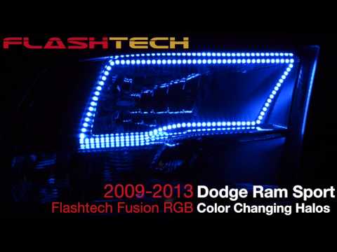 Dodge Ram Sport 2009-2016 V.3 Fusion Color Change LED Halo Headlight Kit with Bluetooth RF Remote, originally designed and uniquely manufactured by Flashtech, are the most advanced halo kit ever designed. Flashtech's Fusion color changing technology eliminates the frustration of choosing just one halo color and enables complete halo customization with the press of a button.