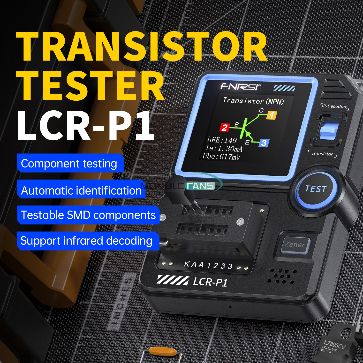 Original FNIRSI LCR-P1 Transistor Tester Diode Triode MOSFET NPN PNP SMD LCR ESR