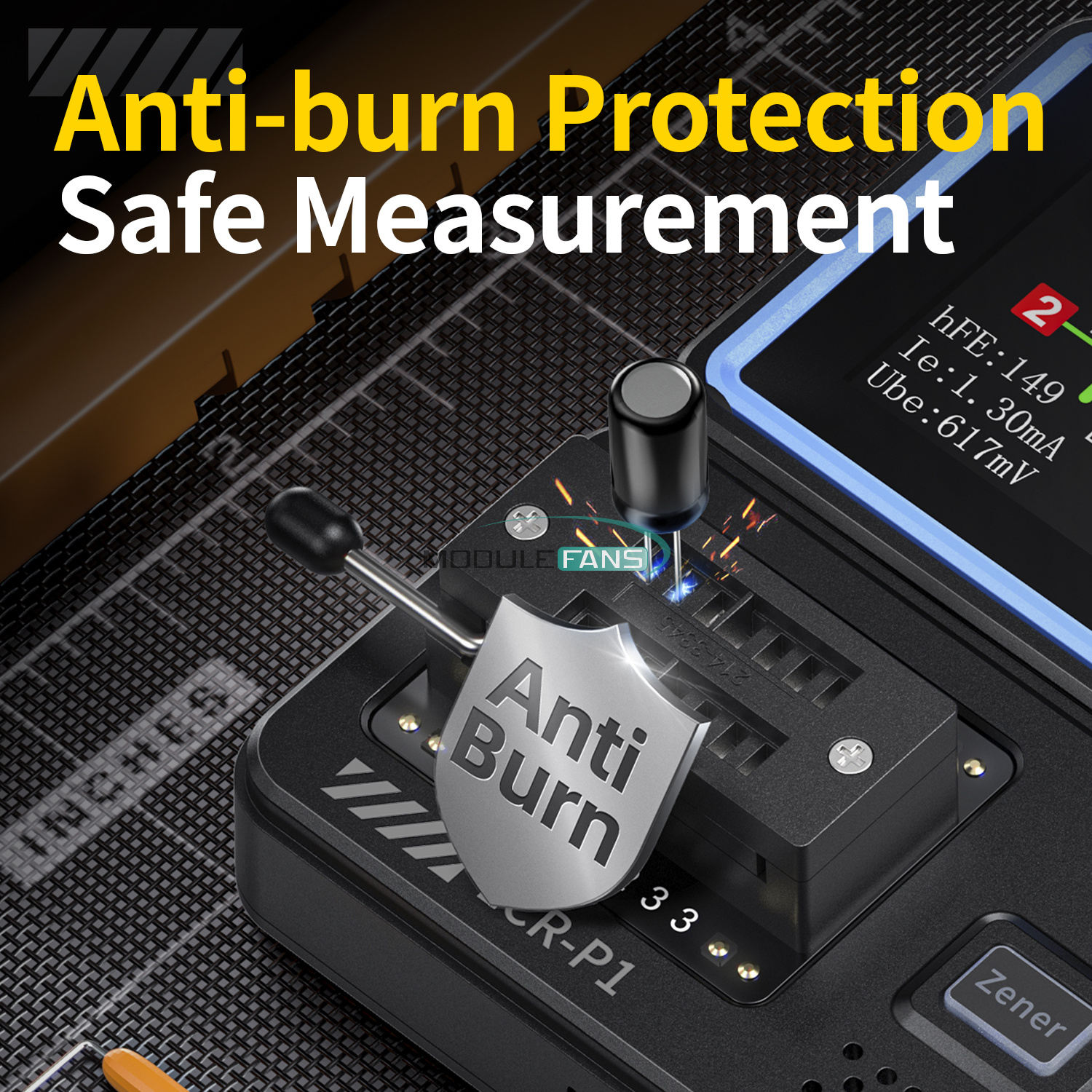 2. Anti-burn protection guards each measurement: undischarged capacitors in the insertion of the locking moment the machine will be discharged to the capacitor, humanized protection mechanism, anti-burn meter.