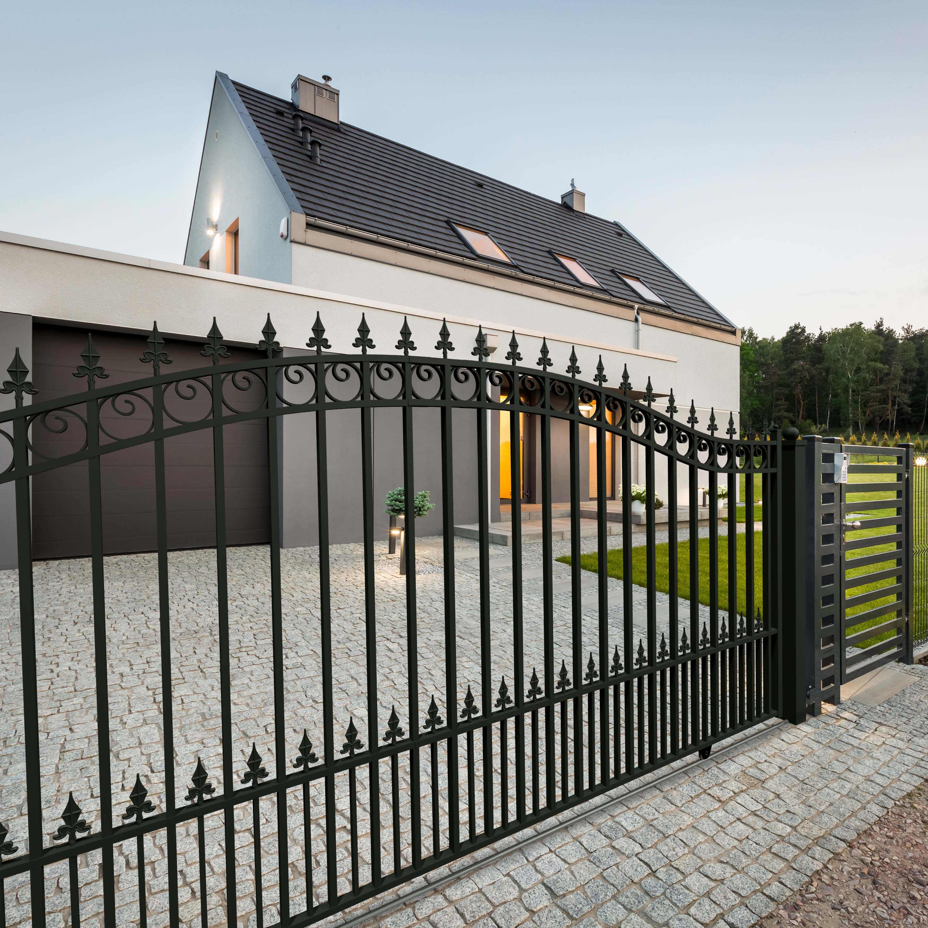 ALEKO High quality 18' x 6' Single Sliding Driveway Gate, specially designed for the easiest installation. The Driveway Gate captures the classic magnificence of historic wrought iron gates at an affordable price. We use the Duplex System when to make our gate: Galvanized Steel and Powder Coated Paint. Galvanized Steel is a process that protects the steel from rust and corrosion. The powder coating actually increases the life of galvanized steel. Unlike conventional paints, powder coated paints will not peel, chip or crack. One of the most dramatic changes you can make to the exterior of your home is adding an electronic opening gate that increases home security and enhances the aesthetics of your property. Make this driveway gate into an automatic gate by installing a gate opener that increases home security and enhances the aesthetics of your property.