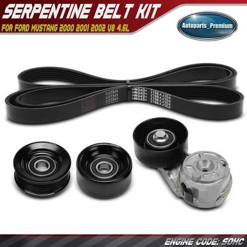 4pc Serpentine Belt Drive Component Kit for Ford Mustang 2000 2001 2002 V8 4.6L