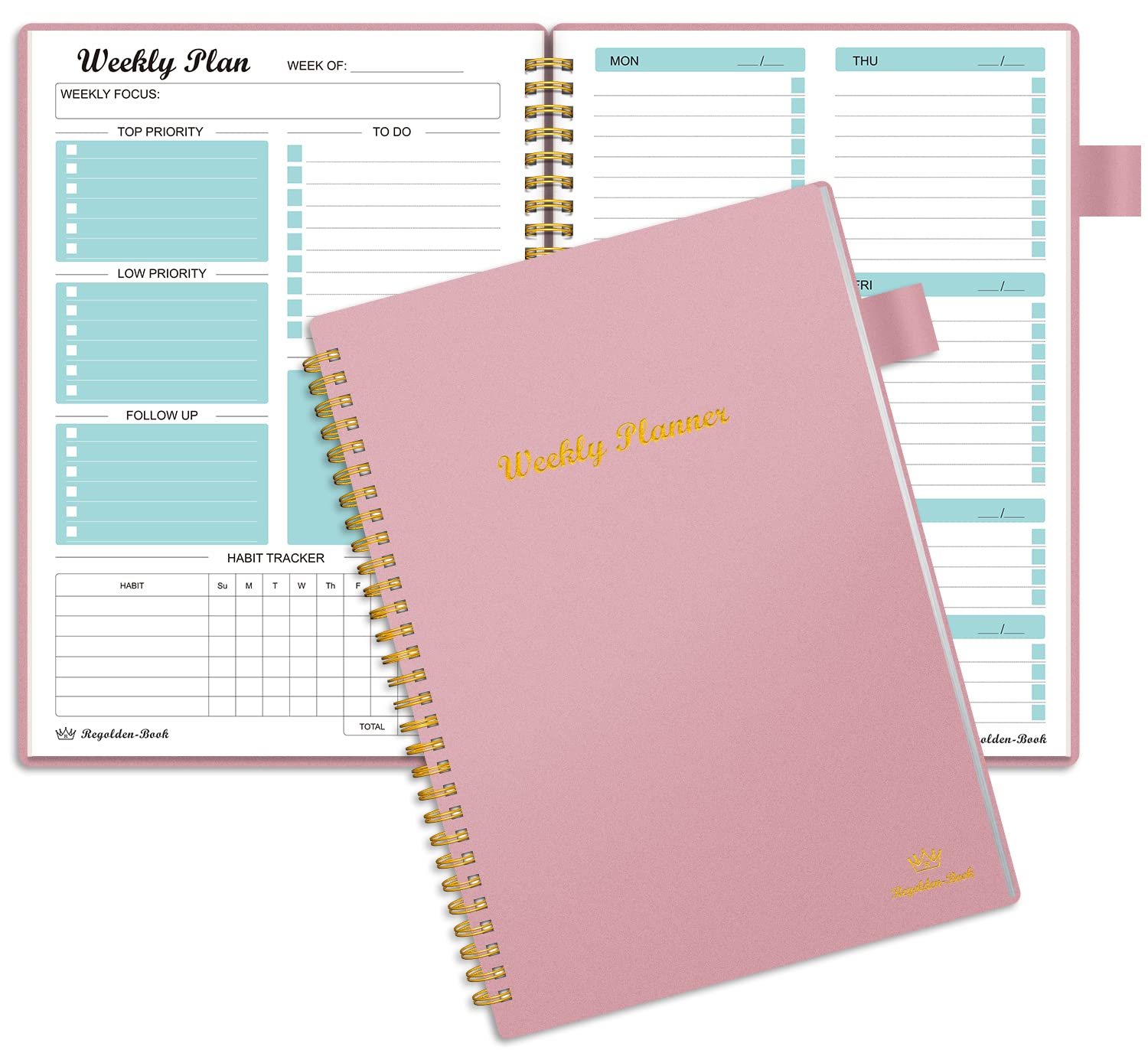 Weekly Planner Undated, Weekly Goals Schedule Planner To Do List Notebook Calendars Organizers Habit Tracker Journal for Man & Women, Spiral Binding, Pocket, Pen Loop, 53 Weeks (7x10")