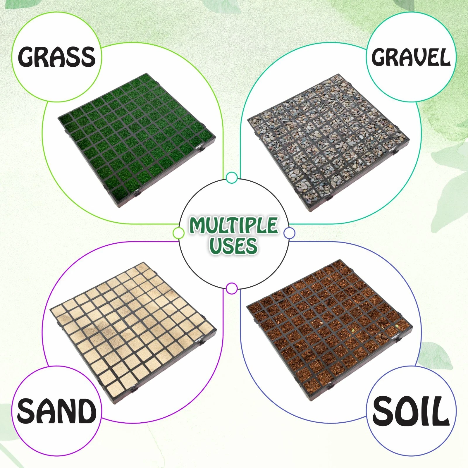 Multipacks - Grass Grids for Gravel Garden Drive Ways Shed Bases Parking Reinforced Recycled Plastic Permeable Paving Black Grids Turf Grass Lawn Path Protector Drainage Mat 50cm x 50cm (Made In UK)
