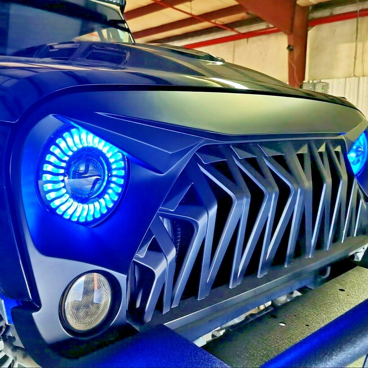 7" Round Halo LED Headlight Flashing RGB Headlamp Bluetooth Jeep Wrangler JK TJ