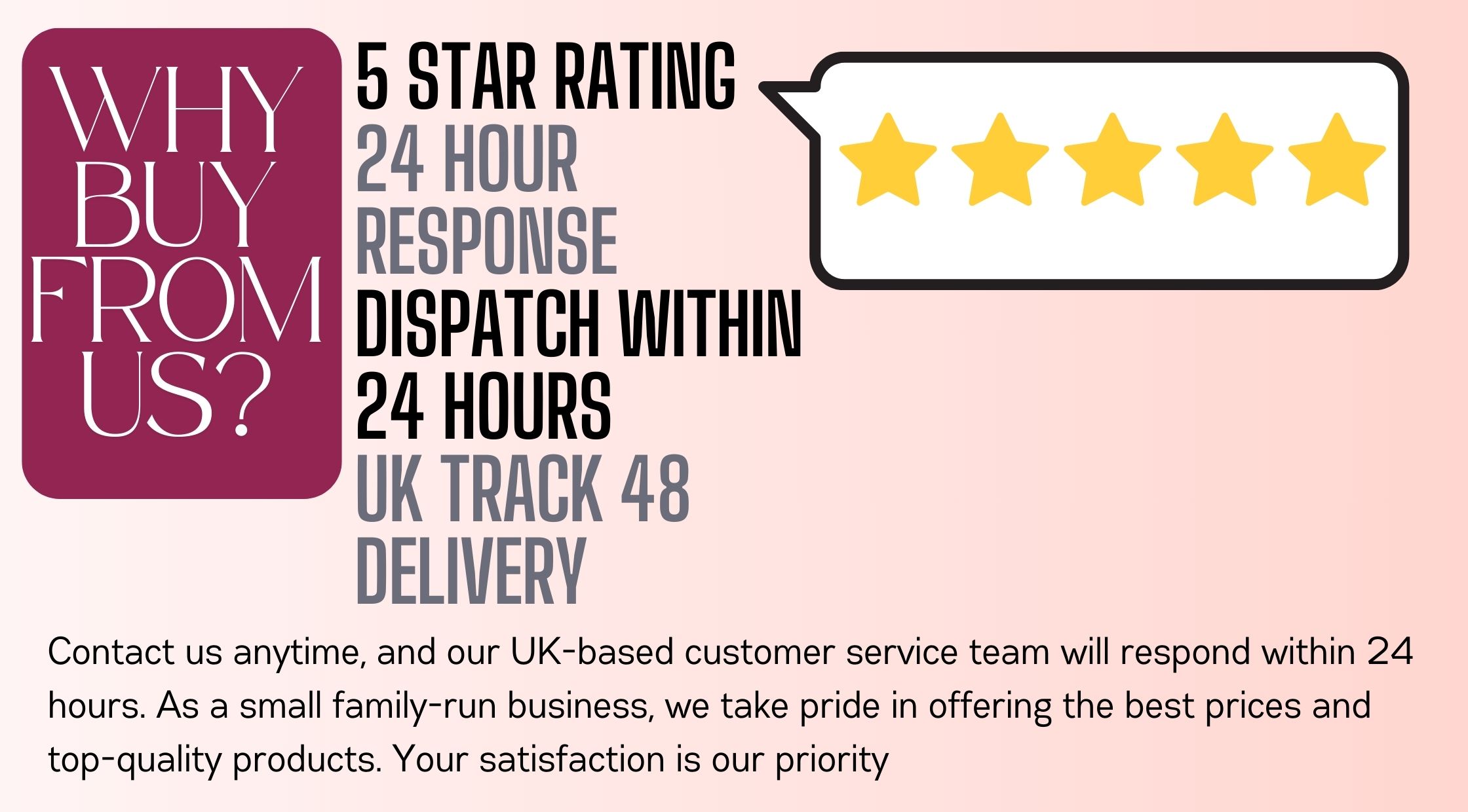 - FREE Tracked Delivery: Free tracked shipping with a 48-hour delivery window. Most orders arrive within 3-5 working days.