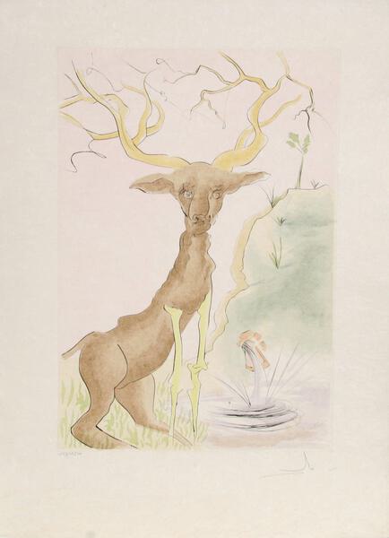 Limited edition Etching by Salvador Dali from 1974. Signed and numbered in pencil. Referenced in "The Official Catalog of the Graphic works of Salvador Dali" by Albert Field, 1996 as Figure 74-1 G on page 92
