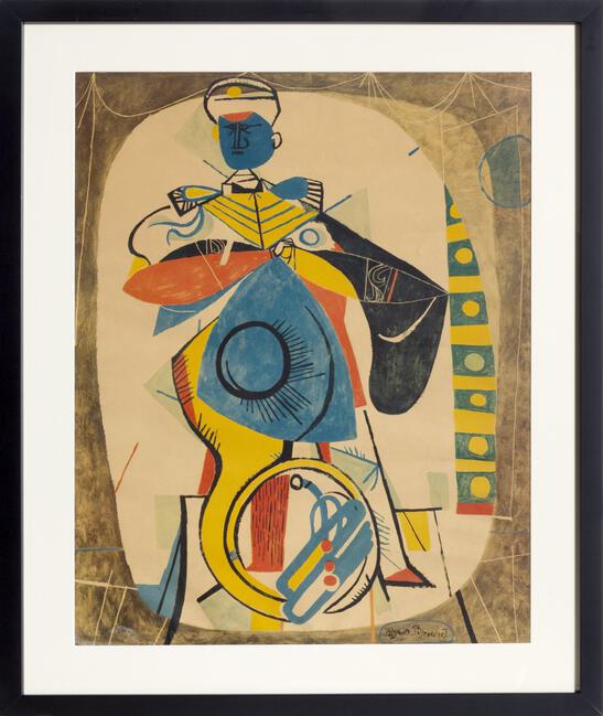 Title: Byron Browne, Sousaphone Player in Marching Band, Collotype Poster, signed in the plate