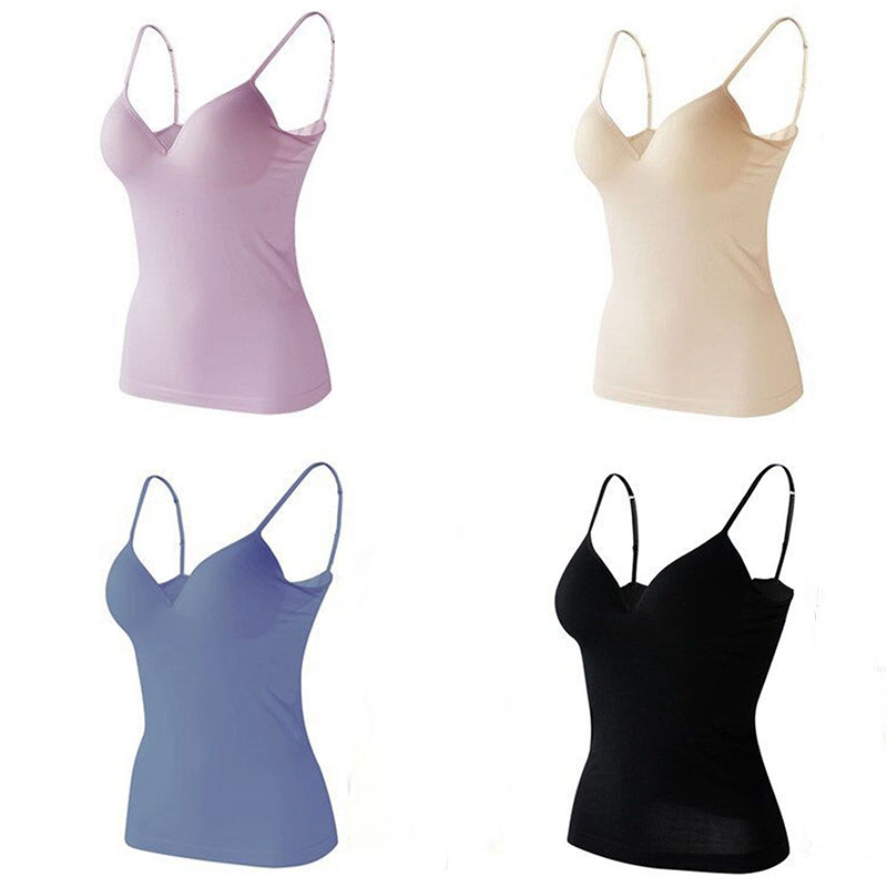 Summer Women's Camisole Tops with Built in Bra V Neck Vest Padded Slim Tank Tops