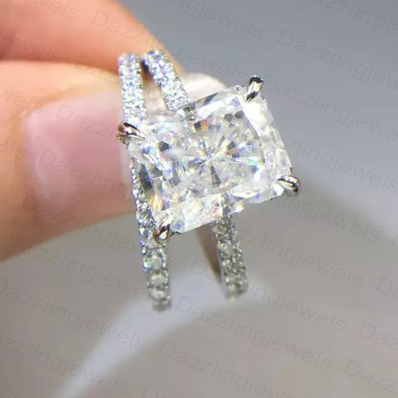 - Stone: Radiant Cut 10x8 mm GRA Certified Moissanite