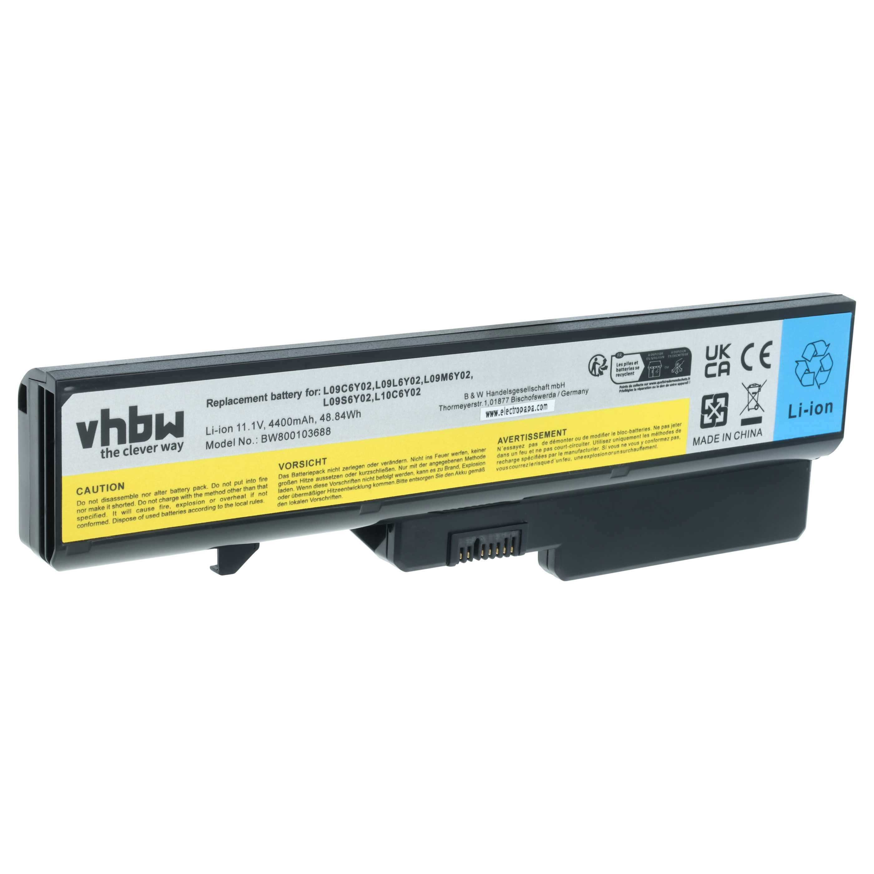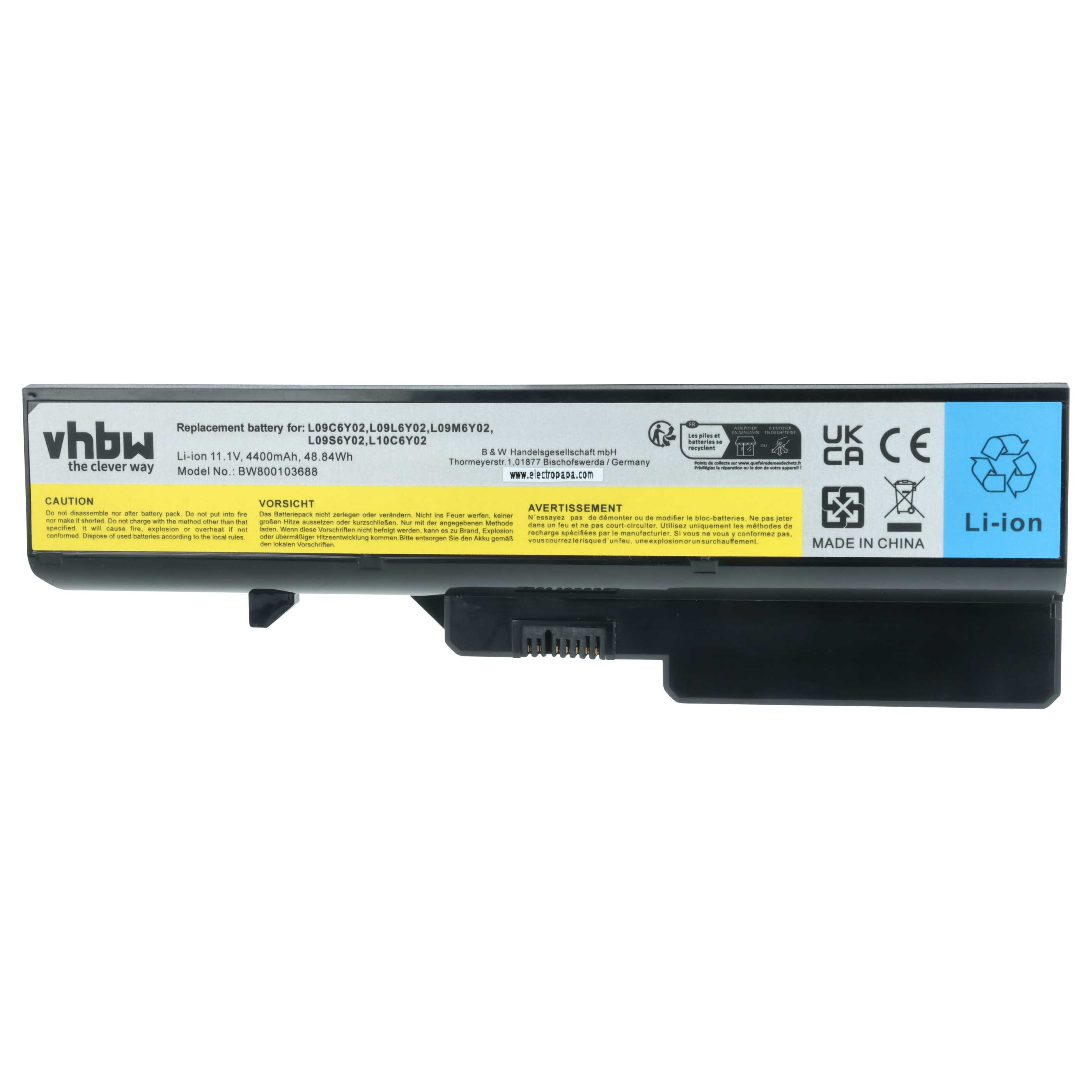 vhbw leistungsfähiger Akku passend für IBM / Lenovo L09N6Y02, L10C6Y02, L09S6Y02, L10P6F21, L10M6F21 Akku für Laptop, Netbook (Li-Ion, 4400mAh, 11,1V)