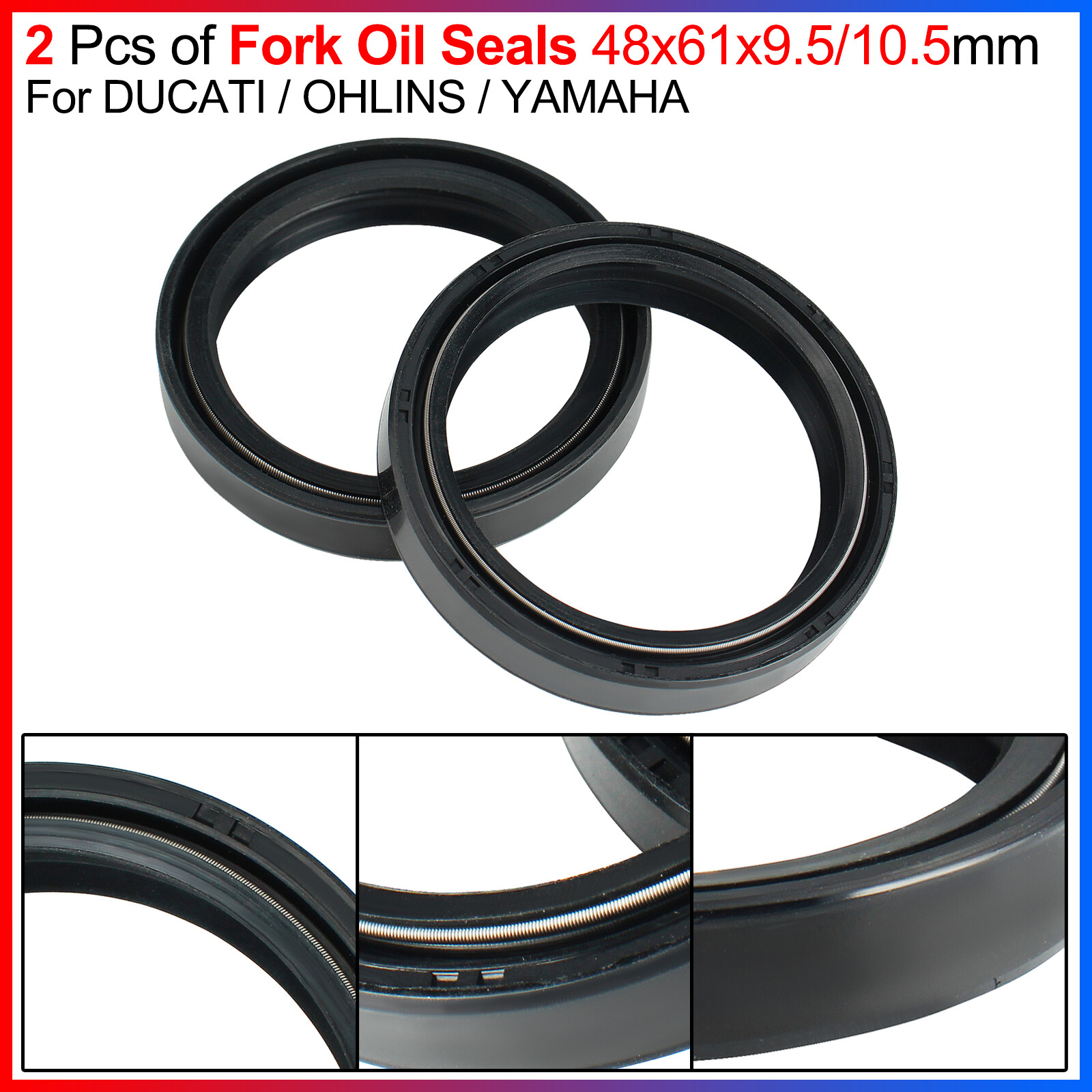 2 Pcs of 48x61x9.5/10.5mm Rubber Fork Oil Seals For DUCATI / OHLINS / YAMAHA